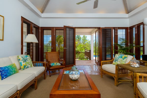 Twin Palms Villas is undoubtedly one of Anguilla’s most conveniently situated vacation homes. For larger parties, a two-bedroom Beach Palm Villa can be combined with a three-bedroom Coconut Palm Villa to create a spacious five-bedroom villa estate steps away from one of the world’s best beaches – Meads Bay. When combined, you get two villas— that means two pools, two kitchens, two terraces, and double the space to relax in paradise with the people you love. These exceptional villas are also within easy walking distance of many of the West End’s gourmet restaurants, five-star hotels, and spas. The villas are situated in a large, walled garden where clever landscaping and walkways separate and provide privacy for the two properties. Take a leisurely two-minute walk to Meads Bay Beach, where lounge chairs and umbrellas are set up for the exclusive use of our guests. Twin Palms Villas's exceptional location is just steps away from stunning Mead’s Bay Beach – two miles of glorious powder white sand – where lounge chairs and umbrellas for the exclusive use of the villa’s guests are available. Mead’s Bay is also the home of many of Anguilla’s most popular restaurants – including Blanchard’s Beach Shack, Jacala and Straw Hat, Ocean Echo, and the five-star Malliouhana Hotel. There is also a large supermarket three minutes' drive away. These charming contemporary Caribbean villas offer guests exceptional privacy and space, situated in half an acre of tropical gardens and boasts a pretty, private pool and luxurious sunbathing terrace. The architect-designed property is luxuriously furnished and benefits from partial sea views, vaulted ceilings, comfortable contemporary furniture, and great natural light. Relax and enjoy sunrise and sunset views from Coconut Palm’s rooftop terrace. Complimentary beach chairs/umbrellas and tennis! Twin Palms guests benefit from dedicated sun loungers and umbrellas reserved exclusively for them on a prime spot on Mead’s Bay beach. Villa guests are also able to enjoy complimentary use of the Tennis Courts at nearby Carimar Beach Club. Each villa features its own saltwater swimming pool, cathedral ceilings in the living and dining areas, granite countertop kitchen with stainless steel appliances, flat-screen cable TVs in the living room, outdoor showers, wireless internet, housekeeping 6 days per week, access to laundry. Both have partial views of the ocean from the pool deck and Coconut Palm’s rooftop terrace. Sun beds and umbrellas are on Meads Bay, as well as tennis courts.