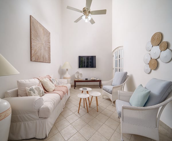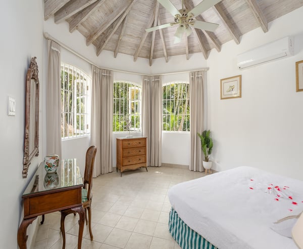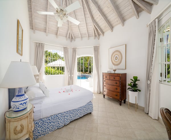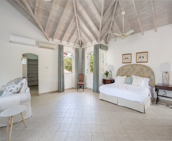 Guests staying within the world famous Sandy Lane Estate will have complimentary access to all Clubhouse facilities including beach chairs, umbrellas and tennis courts. Nestled within the prestigious Sandy Lane Estate in Barbados, Villa Pappagallo is more than just a villa, it is a private tropical sanctuary, artfully combining timeless elegance with the vibrant beauty of island life. Set on 1.5 acres of lush, landscaped gardens with waterfalls, ponds, and majestic palms, this exquisite five-bedroom estate invites you to unwind in serene luxury. From the moment you arrive, a warm welcome awaits, complete with a refreshing drink and revitalising, cool towels. Step into the grand coral stone reception lounge and feel immediately at home, surrounded by soft, sophisticated furnishings and a gentle island breeze. The villa boasts five expansive ensuite bedrooms, a newly fitted designer kitchen with premium Smeg appliances, a stylish TV room with streaming capabilities, and an indoor dining space designed for elegant gatherings. Crowning the villa is the Master Suite, a private sanctuary complete with a generous covered balcony that unveils breathtaking panoramic views over the pool deck, stretching toward the shimmering sea and endless horizon. This elegant space offers the perfect setting to unwind, sunbathe in privacy, or toast the day’s end with a sunset cocktail. On the ground floor, four additional spacious ensuite bedrooms promise comfort and serenity. Each features walk-in wardrobes and luxuriously dressed beds with plush mattress toppers and crisp, cool cotton linens. Arranged thoughtfully across both wings of the villa, each side offers a King bedroom with direct access to the pool deck, paired with a second bedroom that can be configured as twin or super-king, ideal for families or groups seeking flexibility and togetherness. Every bedroom is equipped with air conditioning, ceiling fans, hairdryers, and USB charging ports, ensuring modern convenience blends seamlessly with timeless comfort. Cots and additional single beds can be arranged upon request to accommodate every need with ease and elegance. The expansive pool terrace features a generous 15-meter pool, a separate Jacuzzi, and abundant space to bask in the sun or relax in the cool shade throughout the day. Elevated gently on a coastal ridge, the villa enjoys the added luxury of a refreshing breeze.