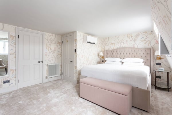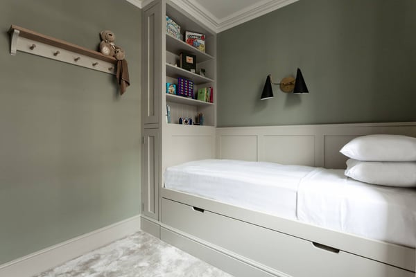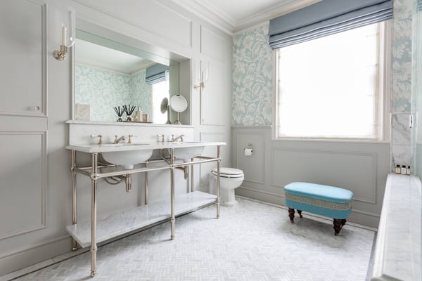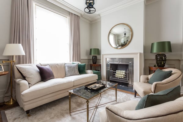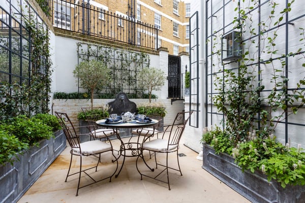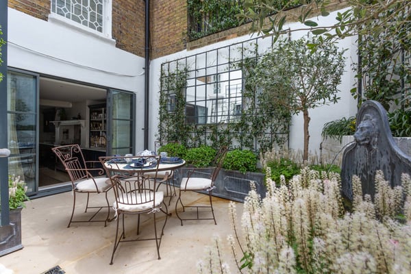 Green House is a charming four-bedroom home located in the prestigious Knightsbridge neighbourhood of London. The interiors are beautifully decorated, blending modern and traditional elements. The neutral colour palette is complemented by plush furnishings, including cozy sofas, cushions, armchairs, and padded bed headboards. Touches of bold emerald green or petrol blue tones, herringbone marble bathroom tiles, beaded wall panels, and ornate wallpaper add sophistication and charm. Spanning four floors, this residence is ideal for families. The bedrooms, including two Ensuite bathrooms, are on the upper three floors, while the entrance level features two inviting living areas, including a cozy TV room filled with books. The lower level boasts a stunning kitchen that opens up to a delightful outdoor courtyard with a peaceful water fountain, perfect for enjoying a cup of tea on a serene afternoon.