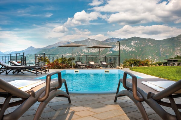 Lake Como – that shock of blue piercing the lush green pre-alpine hills of Northern Italy – is a dream landscape like no other. And our luxury four-bedroom Villa dei Sogni was custom-designed to make all your Lake Como dreams come true. From its lofty perch above Bellagio, Villa dei Sogni affords unobstructed views of all three branches of the world’s favorite lake, whether you are lounging by the outdoor pool, dining under the gazebo or sipping your morning coffee from the terrace sofa. All of the area’s must-see sights are within easy reach of this central location, from historic villas and botanic gardens to zip-lining and high-adrenaline watersports. The kitchen, dining room, living room and an extra half-bath are all on the main floor, along with two ensuite guestrooms, one with a double bed and one with twin beds. Virtually all of the main floor rooms have direct access to the garden and pool area, giving guests the opportunity to live the indoor/outdoor lifestyle that Italy is famous for. Upstairs, guests will find a convenient workstation sitting between the two additional ensuite guestrooms as well as a storage space for suitcases (and the raincoats you probably won’t need!). The basement, accessed from the outside, promises fun for the whole family with foosball and Wii sports, a fitness room and sauna as well as a fully-stocked wine cellar with a rustic wooden tasting table. CIN: IT013250B96J6CBH3L