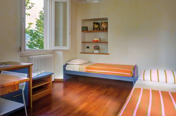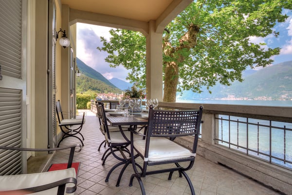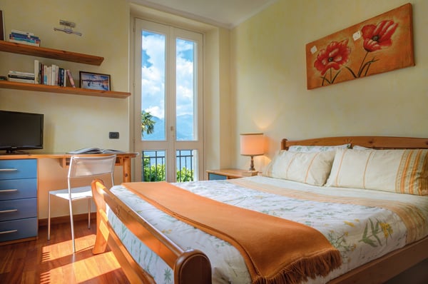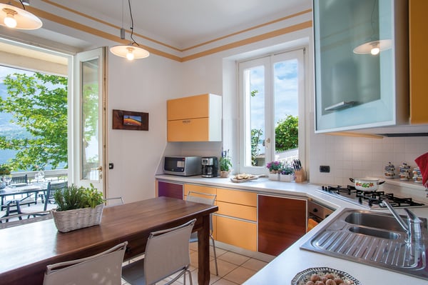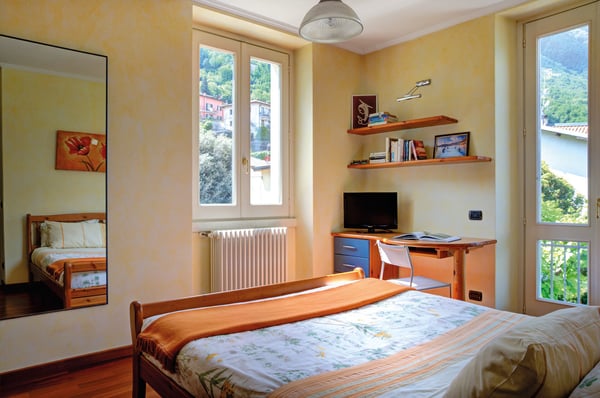 Sunny Villa Chicca is, as the name says, a real treat. Its bright yellow façade and leafy garden call to mind that other Lake Como gem – Villa Balbianello – which forms part of the villa’s panoramic views. Living life ‘al fresco’ is what Italy is all about, and what better place than Villa Chicca’s well-manicured gardens, furnished covered terrace and sweet pebble beach? With the village center of Lezzeno just a stroll away, you’re never far from a great cappuccino, a meal of fresh lake fish or wood-fired pizza and the chance to rub shoulders with the Lake Como locals. And the area’s quaint villages and must-see sights are all within easy reach whether you strike out on your own or take the public boat from the nearby landing. Villa Chicca has three floors of living space, with each room, terrace and balcony designed to make the most of the stunning views. The ground floor kitchen has a breakfast table and access to the covered terrace for long lazy lake-view meals, while the open-plan living/dining space has ample space and entertainments for families and the added charm of period antiques. Two comfortable queen bedrooms and one twin bedroom are on the second floor along with a family bath featuring a Jacuzzi tub and two step-out balconies. One of Villa Chicca’s most popular ‘treats’ is the third-floor penthouse with its sloped timber-beamed ceilings and Villa Balbianello views. The penthouse sofa pulls out to a queen-sized bed, making this floor into a private suite of sorts with its own shower room and convenient workstation. CIN: IT013126C2ACYNV9HH
