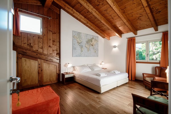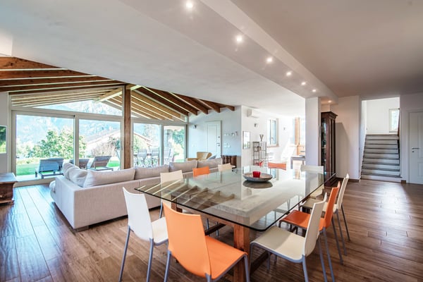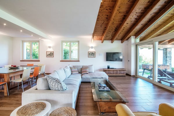 With the picturesque fishing village of Pescallo at your feet and the Rockefeller Foundation’s elegant Villa Serbelloni across the valley, Villa Sissi commands stunning views of the entire central lake area. And although it sits in the quiet residential area of Aureggio, Bellagio’s creamy gelato, tempting boutiques and traditional trattorias are just a short stroll away. Self-drivers will find a myriad of nearby destinations to explore nearby or opt instead to crisscross the lake on the convenient ferries departing from the jetty in the center of town. Of course, with the many distractions on the villa property itself – enjoying the view from the Jacuzzi, gathering around the terrace table for a feast, catching some rays by the pool or playing foosball on the patio – you might just never leave… This chic property combines sleek contemporary décor with exposed timber ceilings and accent colors to brilliant effect and capitalizes on that indoor/outdoor lifestyle that Italy is famous for. The ground floor has a spacious, light-filled open-plan living, dining and kitchen space with a wall of glass doors that open on to the garden, while the pool area and covered terrace easily accommodate everyone in your party. The two bedrooms on this floor, one with a king bed and the other with twin beds, each have their own shower rooms as well as direct garden access. Upstairs, you’ll find three additional guestrooms, two with king beds and one with twin beds, and two full bathrooms. Competition is bound to be fierce for the bathroom with the lake-view bathtub and the bedroom that has direct access to the furnished terrace – with what might be the villa’s best view. In the basement, the garage has room for up to two cars, a full-sized bathroom and state-of-the-art laundry facilities. Additionally, this area boasts a small gym, adding to the array of amenities available for guests seeking to maintain their fitness routines while indulging in the villa’s lavish offerings. CIN: IT013250C2OVEYFSV7