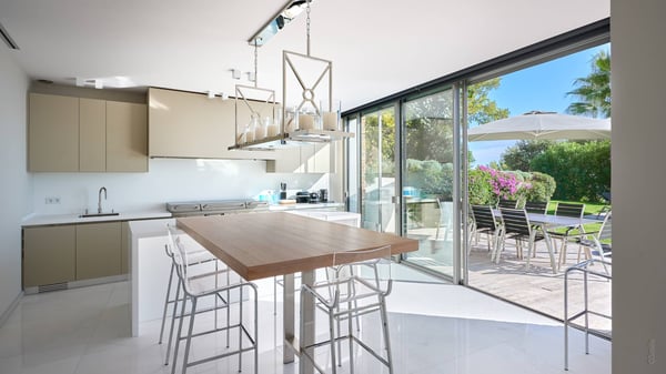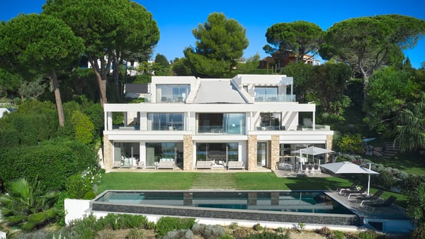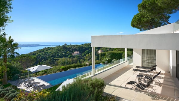 This sumptuous five-bedroom holiday villa is located in Super Cannes, one of the most prestigious neighbourhoods in the city. Vallauris is a modern property set in beautiful private grounds and surrounded by rolling hills overlooking the Mediterranean. The Villa is stylishly decorated in a contemporary style, and can accommodate up to 10 guests comfortably. The bedrooms are split over the villa's three floors and come with en-suite facilities. The elegant 1st floor living space comprises a double reception room with a large lounge area and dining room, plus a fully equipped kitchen. On the garden level, you'll find a wonderful summer kitchen and living room with direct access to the patio and stunning infinity pool. Thanks to its ideal location in exclusive and secluded Super Cannes, Vallauris is just minutes away from the city centre. Discover Cannes' gourmet restaurant scene, browse the luxury boutiques along the Croisette, or simply soak up the sun on one of the resort's glamorous private beaches. This is the perfect spot for a fabulous vacation on the French Riviera.