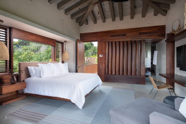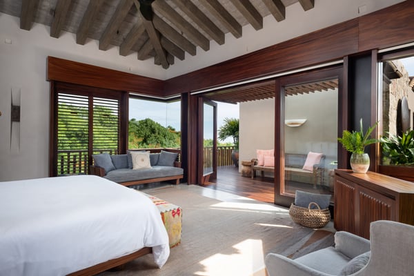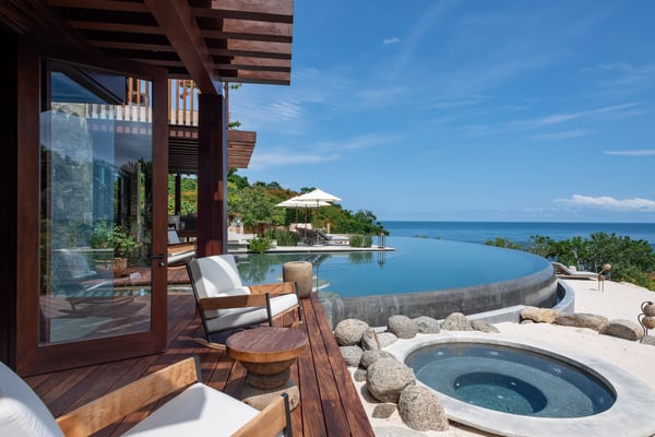 The Premier Golf Membership grants access to Pacifico Golf Course ($), Bahia Golf Course ($), the Tennis Centre ($), the Fitness Center ($), El Surf Club based on min. consumption fee ($), St.Regis Beach Club based on availability and min. consumption fee ($), Pacifico Beach Club, Sufí Ocean Club and Kupuri Beach Club. Contact our Villa Specialists for more information. El Milagro Diario is a breathtaking 15,000-square-foot private beachfront luxury resort, designed and built with privacy, recreation, and relaxation in mind. Perched over a secluded beach in Punta Mita, this elegant property is bordered by running creeks, a tropical forest, and a reef perfect for snorkeling. Aesthetically immaculate interiors fuse contemporary refinement and Southeast Asian exoticism. Comprised of multiple pavilions conjoined by enchanting footpaths, Villa El Milagro Diario presents a bold vision of indoor-outdoor tropical living. Sleek lines and crisp vertices sculpt glorious open-concept spaces scintillating with youthful vibrance and holiday excitement. Varnished exotic timbers are on full display, with rich hues garnished with exquisite ceramics, figurines, and globetrotting decor. This technology-forward Punta Mita vacation rental delivers cutting-edge 21st-century comforts with private SONOS systems and state-of-the-art televisions