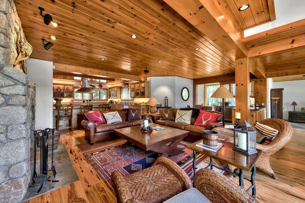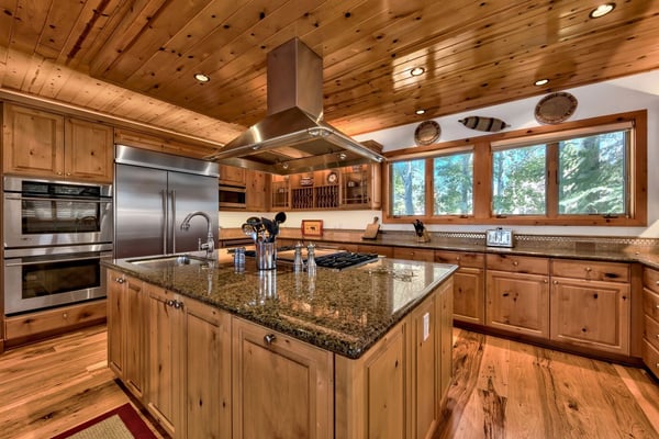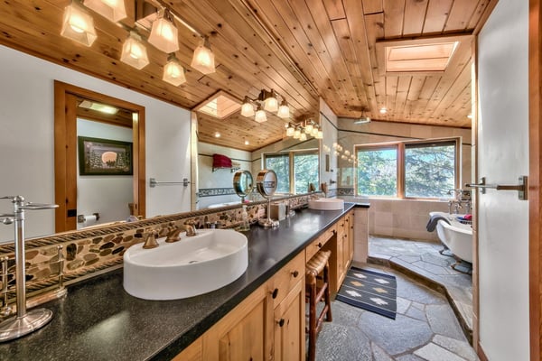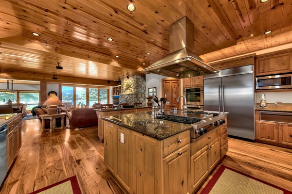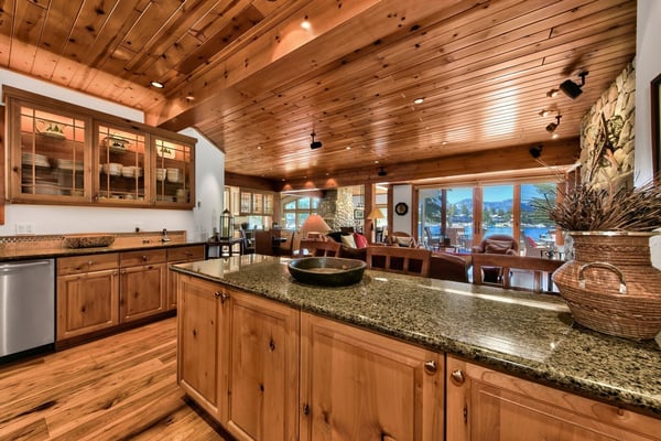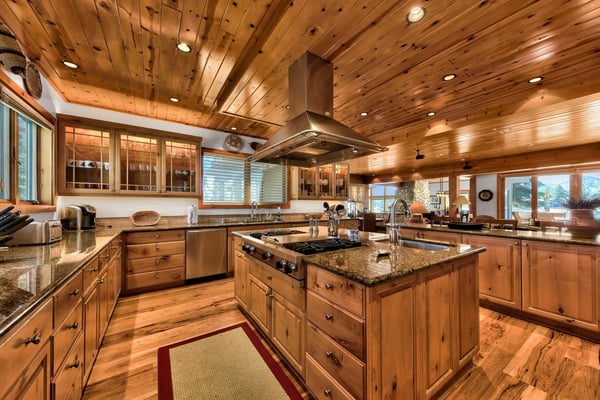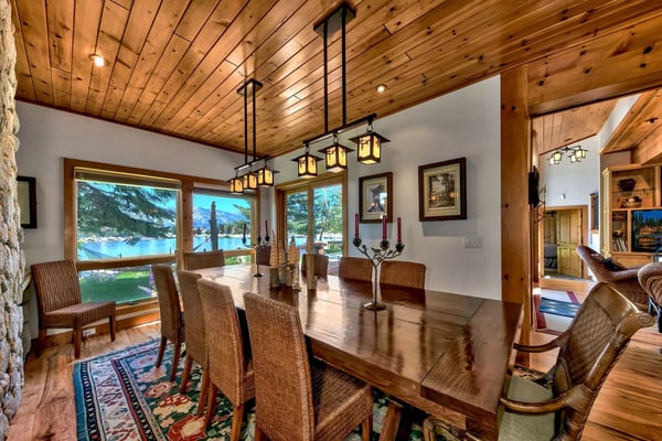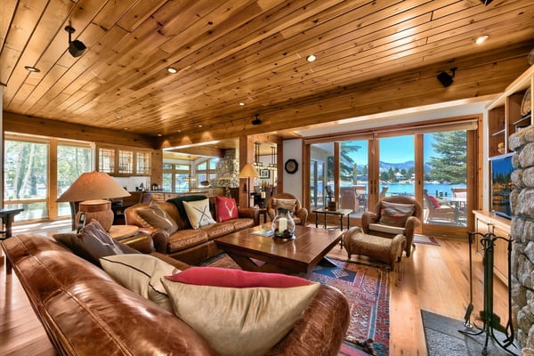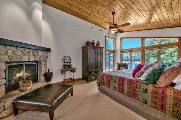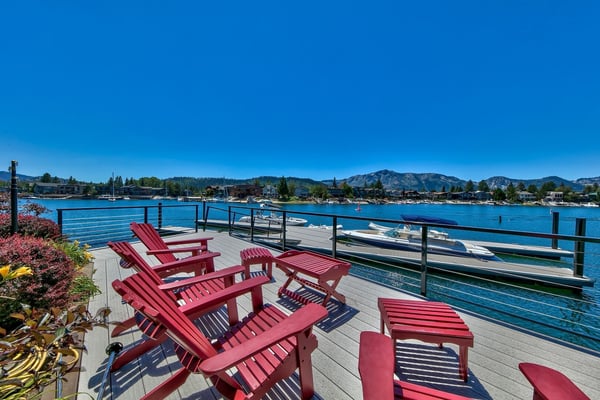 Upon stepping foot into this magnificent estate, you’ll notice the expansive living room with a large stone-encased fireplace surrounded by comfy sofa seating. An adjacent large-screen television is mounted nearby. Chefs need to look no further than the large gourmet kitchen complimented by stainless appliances and numerous culinary conveniences. Did we mention the views? This exquisite mountain contemporary home is located on one of the largest and most prestigious lots in South Lake. It'll only take 30 seconds from the time you leave your dock until you're full throttle out on the lake, no navigating through the keys to get in and out. Maybe we’re biased but in addition the craftsmanship throughout, we think the backyard is what really sets this property apart from the rest. An outdoor kitchen setup, built-in grill, grassy area, cozy seating areas, and ridiculous views of not only the water but also the surrounding mountains including Mount Tallac. Tired and ready to call it a day? You'll have 5 bedrooms to choose from including three queen bedrooms and a spa-like primary bedroom with ensuite. There is also a bunk room with dual twin over twin bunks almost all with views.