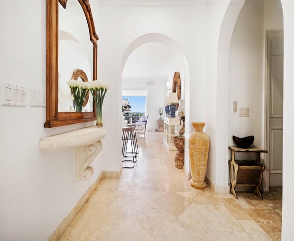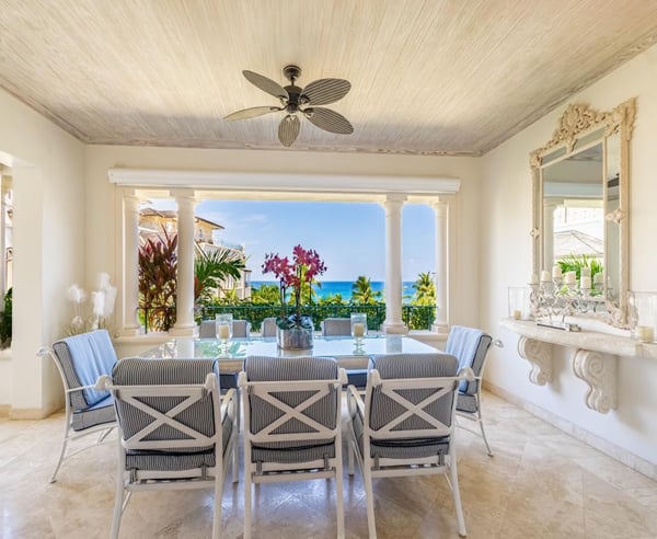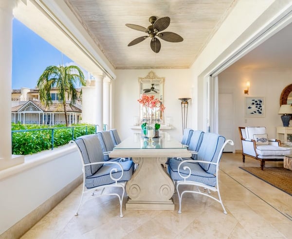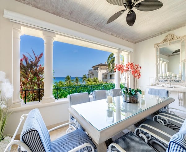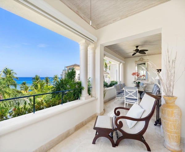 Located in the heart of charming Speightstown, Schooner Bay 305 is a beautifully appointed three-bedroom residence within a private, gated beachfront community on Queen Street. From the moment you enter, you're greeted with breathtaking ocean views that carry through the open-plan living space and both bedroom suites, offering a true sense of coastal luxury. The well-equipped kitchen flows seamlessly into the spacious living and dining area, which opens onto a covered patio overlooking the lush landscaped gardens, communal pool, and the sparkling waters of Barbados' west coast. It's the perfect setting for al fresco dining, morning coffee, or sunset cocktails. All three bedrooms are air-conditioned with ensuite bathrooms and ceiling fans for added comfort. The primary suite features a king-size bed, a large ensuite with both a soaking tub and separate shower, ample closet space with a safe, and direct access to the main patio with spectacular sea views. The second bedroom also enjoys sea views, a queen bed, walk-through closet, and a private ensuite. Schooner Bay 305 is just steps away from one of the island’s most beautiful beaches and within walking distance to an array of local restaurants, cafes, and shops. Whether you’re exploring the vibrant culture of Speightstown or enjoying a peaceful day by the sea, this home offers the best of relaxed Caribbean living. Additional features include on-site parking and 24-hour security, ensuring both convenience and peace of mind during your stay.