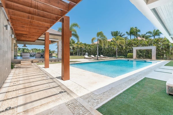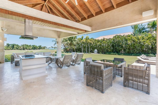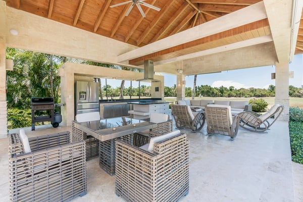 Guests staying within Puntacana Resort & Club will have access to all resort amenities and facilities. Resort amenities and facilities include two golf courses ($), two beach clubs ($), Six Senses Spa ($), restaurants ($), bars ($) and tennis centre ($). Located in the beautiful Arrecife community at Puntacana Resort, Arrecife 26 is a spacious 5-bedroom villa perfect for a relaxing vacation. Each bedroom has its own private bathroom, and the master suite even includes a jacuzzi, offering a touch of luxury for your stay. The villa has an open and airy feel with high ceilings that make the space feel even bigger and more comfortable. You’ll enjoy amazing panoramic views of the ocean and the lush golf course, creating a peaceful and scenic environment. Just a 12-minute walk from the La Cana Golf Clubhouse, the villa offers the best of both privacy and convenience. Inside, there’s a cozy family studio, and outside, you’ll find beautiful gardens with a private pool, a gazebo perfect for BBQs, and a Jacuzzi where you can unwind with its luxurious amenities and beautiful surroundings.