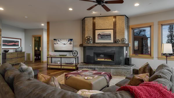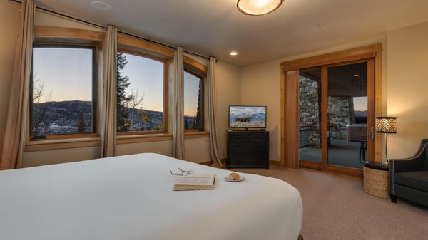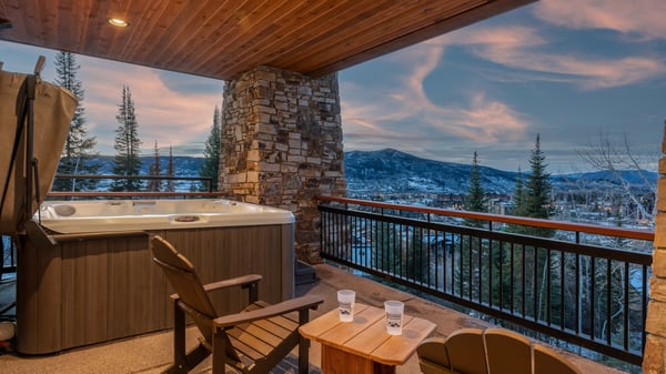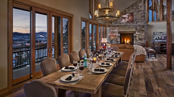 Ski Butlers offers you the best rental experience in the industry. No more lines. Ski Butlers is a full-service ski and snowboard company that delivers the equipment to you. Contact a villa specialist for more information. This extraordinary mountain lodge consists of two private homes with an impressive location overlooking the Steamboat ski area and valley. These residences are perfect for large families to remain close by with plenty of space for all. The two residences are each equipped with an elevator and have a stunning open staircase constructed of timbers and steel which descends alongside a four-story wall of windows. Enter either residence from the top level with a heated garage and built-in lockers that provide plenty of space for coats and snow boots. Both main floors feature great room with vaulted ceilings, wide-plank rustic wood flooring and oversize stone fireplaces. The open floor plan connects the living area to the gourmet kitchen and dining area. The kitchens feature professional appliances throughout and large islands to gather around. Covered recessed balconies extend the living areas into the great outdoors with views of the slopes, gondola, and base area. On each side of the home there is seating for 12 at the main dining room table and room to seat five more at the kitchen island. On the middle levels there are additional kitchens, dining and living areas. Both sides of this home, the North and the South, have identical bedding arrangements. Each home has five bedrooms, ten total, spread out among three floors, allowing ample room for a large group or several families. The primary king ensuites on the main levels have gas fireplaces and private access to the covered balconies. On the middle levels, the bunkrooms can be converted into two smaller bedrooms allowing for flexibility with sleeping arrangements. The second primary suites have a private bath and offer views of the valley and the famed Sleeping Giant Mountain. The third primary suites and queen suites each feature private ensuite bathrooms. A third gathering area with sports bar/recreation room can be found on each lower level. Large flat-screen TVs are perfect for the big game or movie night or enjoy some friendly competition at the pool table. The wet bars are equipped with beverage refrigerators and dishwashers. This level opens up to covered decks with private hot tubs, both with outstanding views. Half bathrooms are conveniently located on all three levels of the homes. Due to the impressive floor plans of both residences with over 14,000 square feet combined, these homes feel more like staying in your own private lodge rather than a vacation home. For smaller groups of up to sixteen guests we can offer the option of the north or south lodges individually. Please note these homes are not connected internally and access to each side is from the main entry door. This home enjoys complimentary use of the shuttle, mid-November through mid-April, using the convenient shuttle app to schedule pickups. Skip the hassle of a rental car and let us take you where you need to go. This home has air conditioning. VHR -10-11 and 13-05