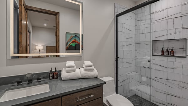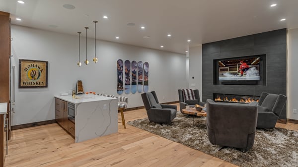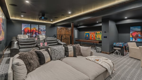 Ski Butlers offers you the best rental experience in the industry. No more lines. Ski Butlers is a full-service ski and snowboard company that delivers the equipment to you. Contact a villa specialist for more information. Step into a world of mountain luxury and unparalleled comfort as you open the door to this meticulously designed and exquisitely furnished 5-bedroom haven. Your journey begins in a vacation retreat so captivating that leaving it for the allure of bluebird ski days might just become a tough decision. This exquisite 5-bedroom home boasts everything you need for everyone in your family. There are spacious rooms for gathering to play games, watch movies; cozy and tranquil private spaces for intimate conversations, reading or working; and expansive outdoor areas where you can spend an entire day entertaining, relaxing, cooking, soaking in the hot tub and even watching TV. The aesthetics throughout, from the furnishings to the artwork and the colour schemes exude sophisticated contemporary comfort. There are gleaming hardwood floors, exquisite marble, windows that flood the space with natural light, and sumptuous throws, rugs and pillows throughout the home. On the main level, there is one open great room that starts with a kitchen that’s any culinary enthusiast's dream. Sleek appliances and modern marbled countertops are the stars of the kitchen. Begin your day in one of the walk-in pantries dedicated to your morning coffee. Then the kitchen itself has two islands, one of which has bar seating for five. The kitchen flows seamlessly to a dining area that has a sleek yet rustic table for eight and then out into the living area where the centrepiece is a captivating double-sided fireplace that is also enjoyed on the outside deck. To keep you even cozier on the deck, there is a firepit in the sitting area. And the outdoor dining space has a heater to take the chill off on those cool evenings. Continuing to wrap around the main level, the deck extends to outside the primary bedroom where guests can step outside for an indulgent soak in the hot tub. The bedroom itself is a lavish retreat with a fireplace and ensuite bathroom. As you’re drawn down to the lower level you’ll be in awe of the spaces that unfold. Starting with a family room featuring a well-appointed wet bar complete with refrigerator, dishwasher, convenient sink and handy microwave. If you’re not gathered around watching a movie, chalk up the cue for a friendly game of pool. The entertainment doesn’t stop there. Get the popcorn popping and settle into the theatre and game room, complete with plush theatre-style seating, state-of-the-art giant screen and a sound system. The room also boasts a card game table, classic arcade game and shuffleboard. (Note: the wine room is locked for owner use only.) Four themed bedrooms are located in the lower level, each adorned with exquisitely curated artwork. Kids will adore the bunk room (bear) with two sets of two twins over a king bed, and an ensuite bathroom with tub/shower combo. Then there are the bison, fox and elk bedrooms. All boasting king-sized comfort with ensuite baths. If it’s too nice to be inside, venture outside where you could almost live all day, every day, all year round! You can cook, soak in the hot tub, warm up in front of two firepits and even watch the big game on TV. At the heart of a covered seating area is a sleek firepit and TV. Heaters and fans are thoughtfully installed for your comfort. The grill masters in your group will be throwing steaks on the sizzling grill and serving up refreshing drinks in the outdoor kitchen and bar. For some quieter moments, retreat to the Adirondack chairs nestled on one side of the deck with soothing sounds from a trickling water feature. Enjoy the tranquil view of the beautifully landscaped yard and beyond to the woods that surround the home for complete privacy. Practical amenities are also thoughtfully included, such as a full laundry room and a two-car garage with entry on the main level ensuring convenience and functionality throughout the home. When you are ready to venture out, the home is conveniently located close to Breckenridge’s historic Main Street. This home enjoys complimentary use of the shuttle, from mid-November through mid-April. 6,162 Sq. Ft. Trailblazer Lodge License Number: 109580004
