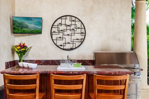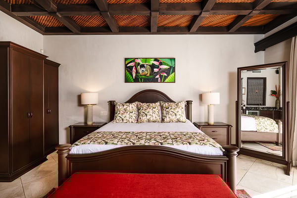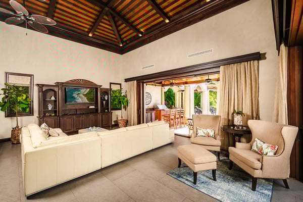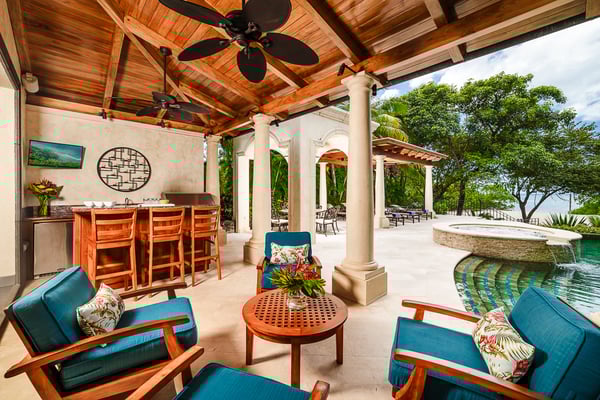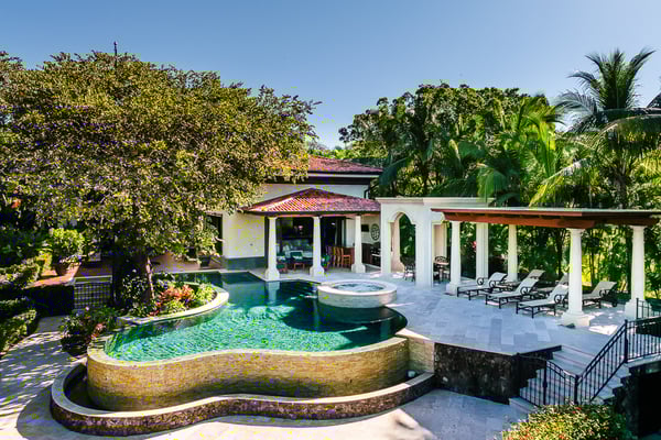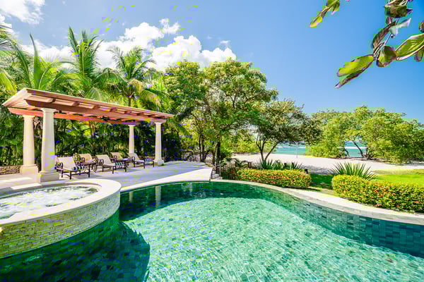 Construction is taking place nearby and may create some noise issues. Contact a Rental Escapes villa specialist for more information about how this may impact your stay. Welcome to Casa Serena, this beachfront paradise is a place where you can enjoy a custom infinity pool with unheated Jacuzzi, spot local wildlife, dine right on the sand, stay active in the gym, unwind in the spa, and relax in breezy outdoor spaces. Standout Features: • Beachfront location steps from the sand. • Custom infinity pool built around a tree. • Unheated jacuzzi for relaxation. • Beachfront dining with ocean views. • Wildlife like iguanas, turtles, and monkeys. • Full gym and spa for activity and relaxation.