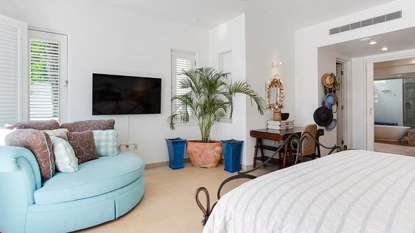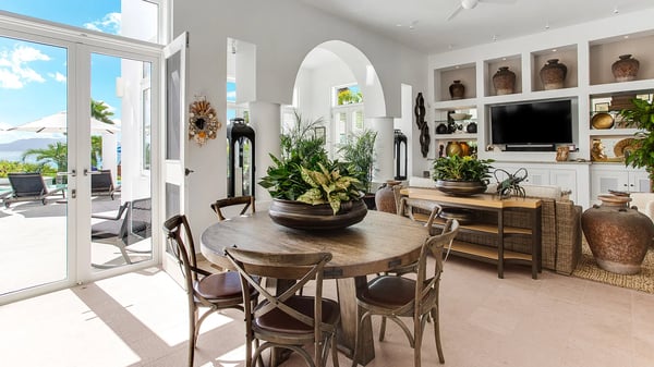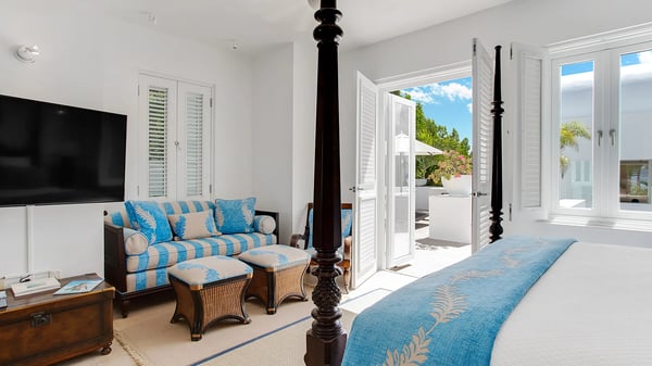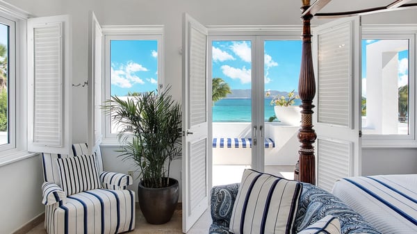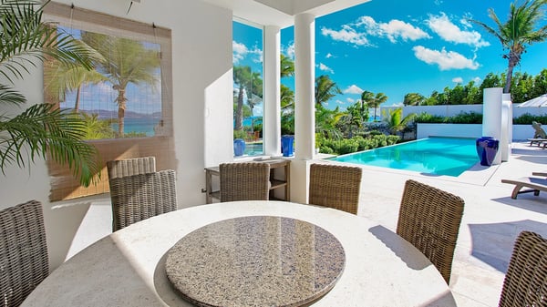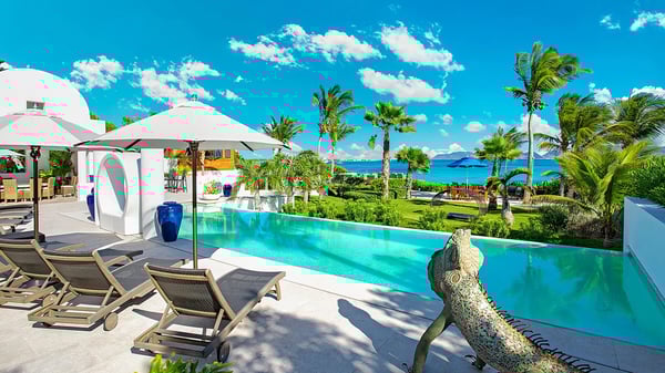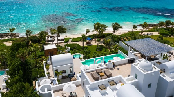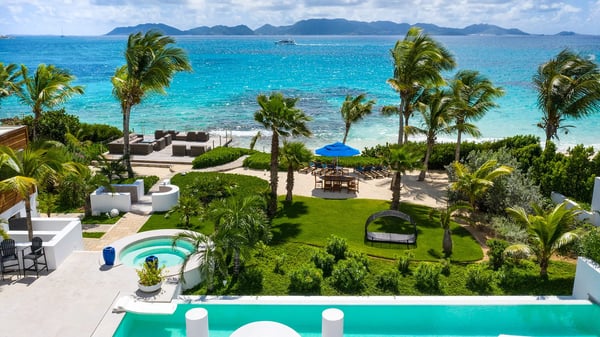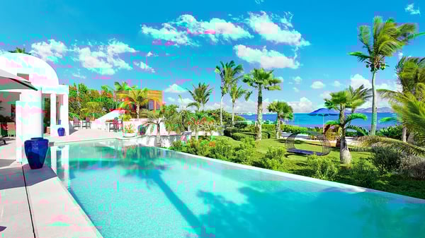 Located on the scenic Aurora golf course, Rendezvous is a luxurious five-bedroom villa in Anguilla that offers the perfect combination of elegance, comfort, and Caribbean charm in the West End, Rendezvous Bay. Situated within walking distance of Anguilla's most celebrated restaurants, vibrant bars, neighboring villa, which is the Songbird Villa, and pristine beaches, this property serves as an ideal retreat for those seeking both relaxation and adventure. Each of the five beautifully appointed suites in this villa is an oasis of comfort and style. The rooms are equipped with modern amenities, including ceiling fans, air conditioning, and state-of-the-art entertainment centers, ensuring a luxurious stay. The villa is adorned with local flora, perfectly combining the beauty of the natural surroundings with the sophistication of the villa's design. This harmonious fusion of nature and luxury is evident throughout the property, creating a peaceful and welcoming atmosphere. The outdoor spaces of this oceanfront retreat are equally impressive, offering a variety of options for relaxation and enjoyment. The expansive beach area offers direct access to the soft sands and crystal clear waters of the Caribbean Sea, where guests can spend their days sunbathing or taking a refreshing dip. The pool deck, which features a heated pool and Jacuzzi, offers ample opportunities for family fun. Whether you're lounging poolside, enjoying a cocktail on the terrace, or relaxing in the Jacuzzi, this villa is designed to meet your every need. One of the most outstanding features of this villa is its breathtaking views. At sunrise, the villa is bathed in warm golden light, revealing vast landscapes of the blue sea. As day turns to night, the sky transforms into a canvas of vibrant colors, providing the perfect backdrop for alfresco dining on the terrace. With postcard-perfect sunsets to accompany your meal, every evening at Rendezvous Villa is a truly magical experience. The living area is perfect for relaxing, with comfortable armchairs and a flat-screen TV for movie nights. The adjacent dining room comfortably accommodates six guests, making it an ideal space for intimate meals with family or friends. The gourmet kitchen has an incredible design, with stainless steel appliances, a large center island, and two ovens. With direct access to the terrace, the kitchen is perfectly positioned for those who enjoy cooking and dining while enjoying the Caribbean. The villa staff is dedicated to ensuring that every aspect of your stay is flawless. From the moment you arrive until your departure, the highly trained and attentive team is on hand to attend to your every need. Rendezvous Villa offers an unparalleled luxury experience in one of Anguilla's most beautiful settings. Whether you're looking to relax by the pool, explore the island's attractions, or simply unwind in the comfort of your private suite, this villa promises a stay that will be both memorable and rejuvenating.