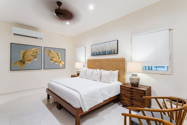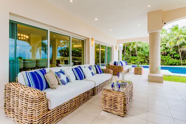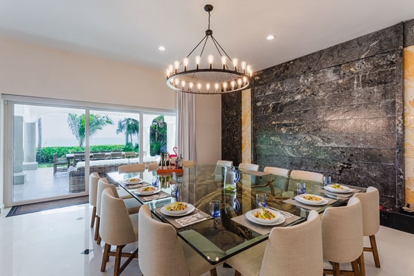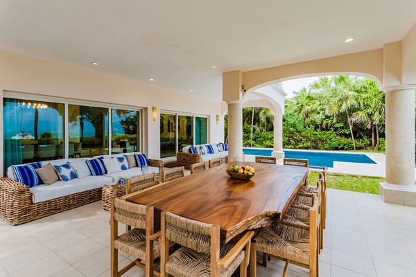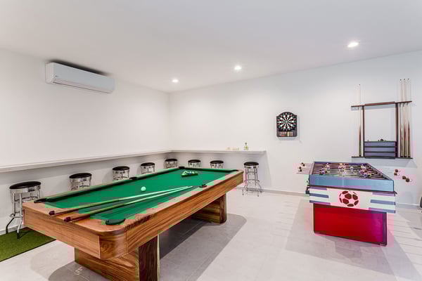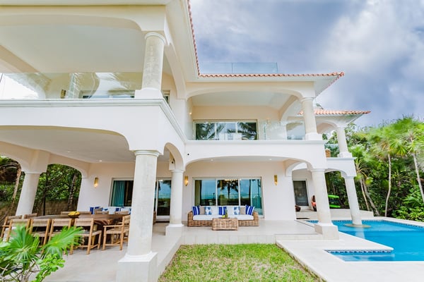 Nestled along the pristine, sun-kissed shores Puerto Morelos in the heart of the Riviera Maya, Palacio de Mar is the quintessential retreat for large groups and extended families seeking a dreamy tropical escape. With a perfect location that combines the tranquility of a secluded paradise and the convenience of proximity to nearby attractions, this villa promises an unforgettable getaway. This stunning villa boasts 8 bedrooms that can comfortably accommodate up to 20 guests. The interior design harmoniously blends rustic Mexican charm with elegant, modern details, featuring exquisite elements such as rich wood, local stone, and handcrafted materials. The villa offers a spacious entertainment room complete with pool and foosball tables, providing endless entertainment for family and friends. As you step outside, a delightful terrace awaits, where you can bask in the sun’s warmth, unwind in the jacuzzi, and simply take in the incredible ocean view. Whether you’re looking to simply relax and soak up the sun on the beach or embark on underwater adventures such as snorkeling, Palacio de Mar’s location offers both seclusion and direct access to the tranquil waters of the Puerto Morelos Beach. Plus, this small, charming town exudes a warm and inviting ambiance, and its prime location just a short drive from Cancun International Airport and a mere 30 minutes from the bustling city of Playa del Carmen makes it an ideal destination for those seeking both tranquility and convenience.
