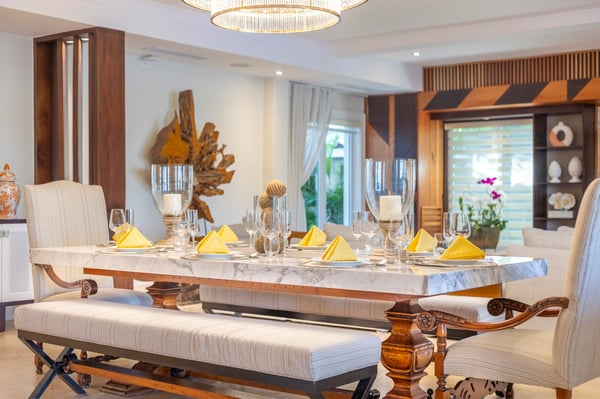 • Personal service by the villa staff including Housekeeping, Chef (Chef will prepare 3 Meals per day + snacks, Food & Beverage cost not included) and Waiter