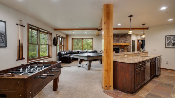 Ski Butlers offers you the best rental experience in the industry. No more lines. Ski Butlers is a full-service ski and snowboard company that delivers the equipment to you. Contact a villa specialist for more information. Welcome to Majestic Mountain Lodge, situated in the exclusive Trapper’s Glen neighbourhood offering ski-in/ski-out access, jaw-dropping mountain views, and luxury amenities including a patio with a gas firepit and hot tub. Located at the top of Four O’clock Road, with the Four O’clock Ski Run and the town of Breckenridge's “Fairy Trail” in the backyard, this property provides convenient access to town, world-class skiing in the winter, and endless hiking trails in the summer. Majestic Mountain Lodge is an ideal retreat any time of year. The main level combines the great room, dining area, kitchen, and breakfast nooks. Expansive windows throughout reveal views of Baldy Mountain and beyond. The large great room, set under vaulted ceilings, will be a popular gathering spot for all whether you’re relaxing beside the gas fireplace and enjoying the views or watching an exciting game on the large flat-screen TV. Enjoy the nearby wet bar with a wine cooler and bar sink. A game table provides a place to play cards, board games, or indulge in a puzzle. Hook up your smartphone to the in-house stereo system and listen to your favourite music throughout the entire main level. The beautifully remodelled gourmet kitchen will delight the family chef, featuring a large island with seating, a 48-inch professional dual oven, a six-burner gas range, and two dishwashers. The kitchen is set between two dining areas, one with two large breakfast nooks and the formal dining area with a large table and seating for 10. On the upper main level is a beautiful primary suite with a king bed, a TV, a gas fireplace, and private deck access to further enjoy the amazing views. An ensuite bath includes a soaking tub and a walk-in shower. A few steps up, there is a king suite and a bunkroom complete with balcony access with one XL twin-over-queen bunk along with an XL twin trundle that slides out from beneath. On the upper level, you will find three bedrooms with ensuite bathrooms, including a king suite with balcony access, a queen suite, and an additional bunkroom with one XL twin-over-queen bunk, along with an XL twin trundle that slides out from beneath. There is one additional queen bedroom on the upper level with sliding barn doors and a shared access bathroom nearby. A loft area has an office workspace and a sitting area. Downstairs on the lower level is the exciting rec room. A large wet bar with bar-style seating, sink, dishwasher, bar fridge, and icemaker offers everything you need to host après ski happy hour. A large flat-screen TV, billiards table, ping pong, and foosball will provide endless entertainment besides the warm gas fireplace. After a day of exciting mountain adventure, retire to the adjacent theatre room end catch up on the latest movies you’ve been waiting to watch. Outdoor entertaining begins with a deck off the kitchen complete with a BBQ gas grill, table, and mountain views. A few steps off the deck is a gas fire pit with seating. A new patio sits behind the lodge and is home to the private outdoor hot tub. A steam shower is provided in the bathroom by the hot tub to relieve those sore muscles after skiing or hiking. Other amenities include a full fire suppression system, washer and dryer, 3-bay heated garage, and parking for 6 cars total. 4-wheel drive required in winter months This home is pet-friendly with an additional fee and written approval. Please contact us for details. Regretfully, weddings and events are not permitted at this property. This home enjoys complimentary use of the onsite shuttle, mid-November through mid-April, using the convenient shuttle app to schedule pickups. The use of the shuttle is on a first-come, first-served basis. This property has WIFI and comes fully stocked with paper products (paper towels, toilet paper, tissues), bathroom toiletries (shampoo, conditioner, body wash, hand soap), and detergents (dish, dishwasher, and laundry) as well as clean bed linens and towels. In addition, the kitchens are stocked with aluminum foil, plastic wrap, trash bags, sponges, soap, salt and pepper, coffee, tea, cookware, bakeware, dishes, glasses, utensils, and standard small appliances. This home does not have air conditioning. Colorado's cool summer nights will keep this home comfortable by opening windows after the sun goes down, and then closing the windows and blinds during the day. Utilizing the overhead fans, if available, keeps airflow moving, and additional floor fans can be found in many bedroom closets. Can't live without it? A/C units may be available for rent for an additional fee. Majestic Mountain Lodge Business License: 402050001 7,139 sq. ft.