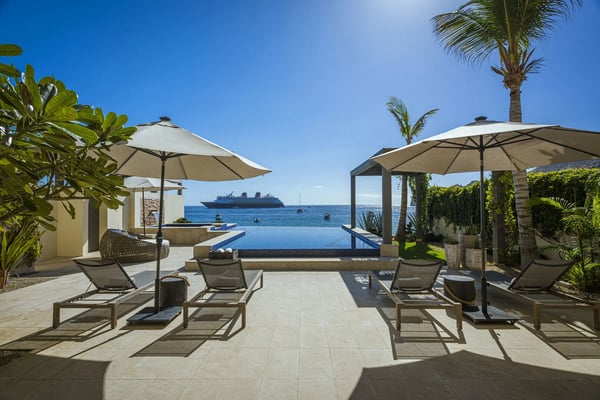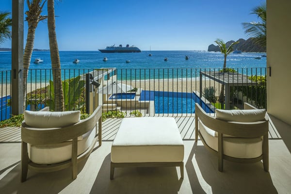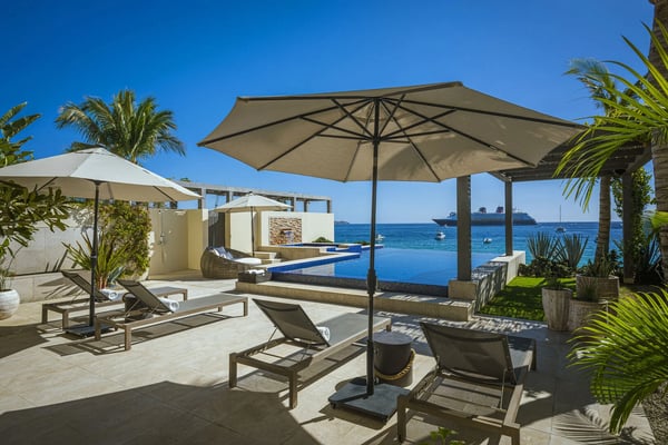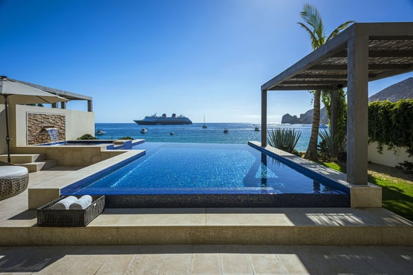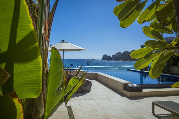 Sea (Mar) and Sand (Arena) converge to create the most beautiful views at the stunning Villa Marena. Witness gorgeous sunrises and stunning sunsets with the famous Cabo’s arch to complete the perfect scene. This luxury two-level beachfront villa features five ample bedrooms, five spacious bathrooms, a magnificent private pool, and its own private access to Medano Beach. The villa boasts commanding ocean views and is located in Hacienda Beach, a safe, exclusive, and quiet gated community at walking distance from Cabo’s main attractions. The two-level layout features a spacious living room, an open kitchen and dining room, and multiple private terraces. Villa Marena offers the perfect location whether you're traveling to Los Cabos with a group of friends or to spend time with family. This lavish villa provides the ultimate in comfort and style while also providing privacy and pleasure.