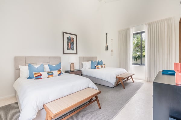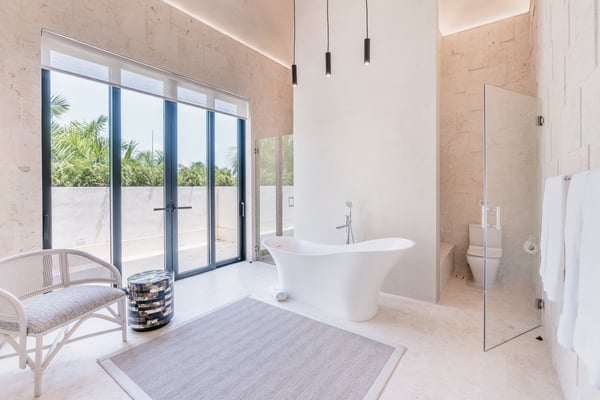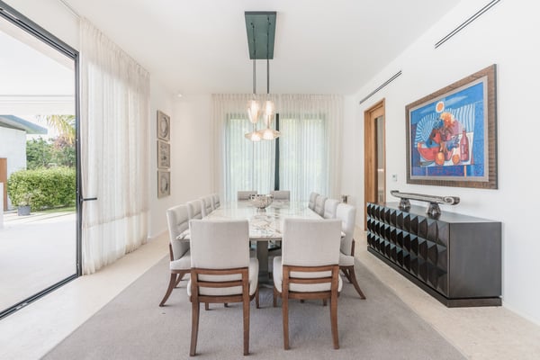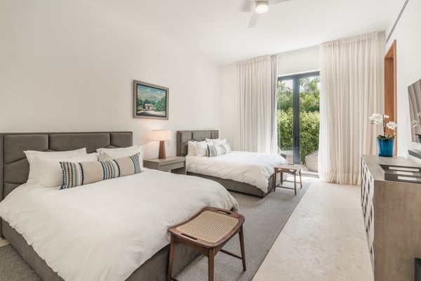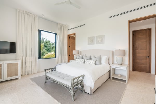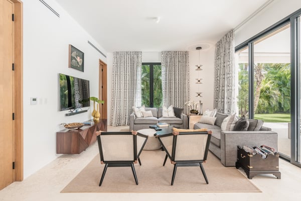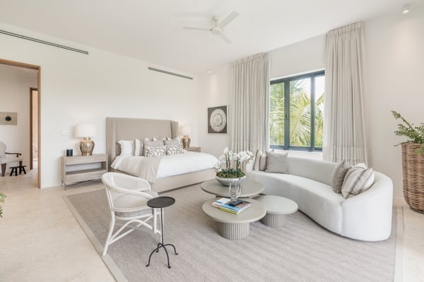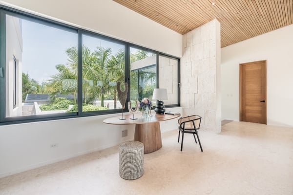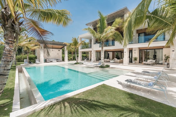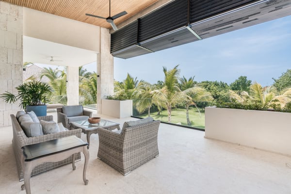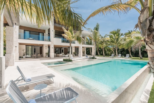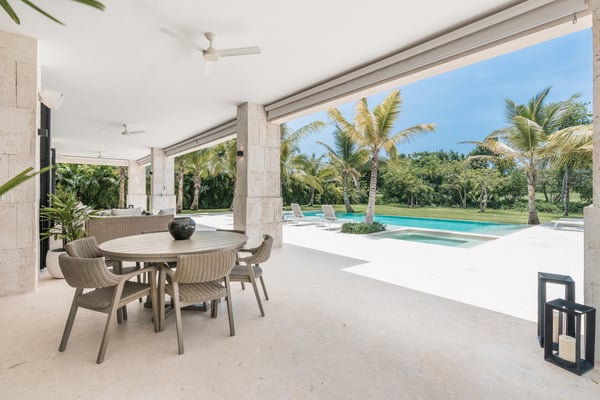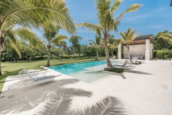 Guests staying within Puntacana Resort & Club will have access to all resort amenities and facilities. Resort amenities and facilities include two golf courses ($), two beach clubs ($), Six Senses Spa ($), restaurants ($), bars ($) and tennis centre ($). This 5-bedroom contemporary golf view villa in Puntacana Resort & Club is a luxurious retreat that offers stunning views of the Hacienda golf course and is located only 5 minutes from the beach. This villa is designed with modern architecture and is situated in a serene and tranquil environment. As you enter the villa, you are greeted by an interior patio that connects the main areas of the house, such as a spacious living room that is elegantly furnished. The living room opens up to a large terrace that overlooks the golf course and is perfect for relaxing and enjoying the beautiful views. The dining room is located adjacent to the living room and features a large dining table that can seat up to 10 people. The kitchen is fully equipped with high-end appliances and has a breakfast bar that is perfect for quick meals. The villa has five spacious and well-appointed bedrooms, each with its own en-suite bathroom. The bedrooms are furnished with comfortable beds, high-quality linens, and have large windows that allow plenty of natural light to enter. The master bedroom is particularly impressive, with its own private terrace that overlooks the golf course and a large bathroom. The villa also features an outdoor private swimming pool and heated jacuzzi that is surrounded by lush tropical gardens. There are also plenty of outdoor seating areas where guests can relax and enjoy the beautiful Caribbean weather.