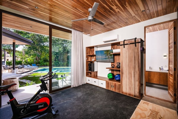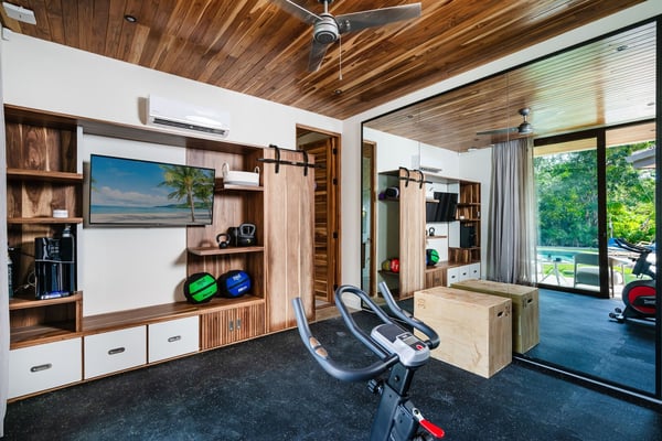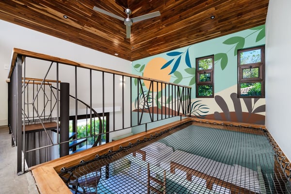 Nearby construction may result in noise disturbances. For further details on how this might affect your stay, please reach out to a villa specialist. Welcome to Villa Alegria, this amazing spot is just a 5-minute walk from the beach, offering space for 17 people, a spacious pool, a Jacuzzi for 10, a fully equipped fitness room, and a kids' playroom with a mini climbing wall—plus, you'll enjoy exceptional service to make your stay even better. Standout Features: • The villa is just a 5-minute walk from the beach. • It offers plenty of space for 17 guests. • There’s a huge pool perfect for relaxing and swimming. • A Jacuzzi for 10 provides the ideal spot to unwind after a day of fun. • The fully equipped fitness room includes a stationary bike, weights, and a private terrace. • The kids' playroom features bunk beds and a mini climbing wall for endless fun. • Each of the 4 primary suites comes with its own private balcony for lush views and privacy.