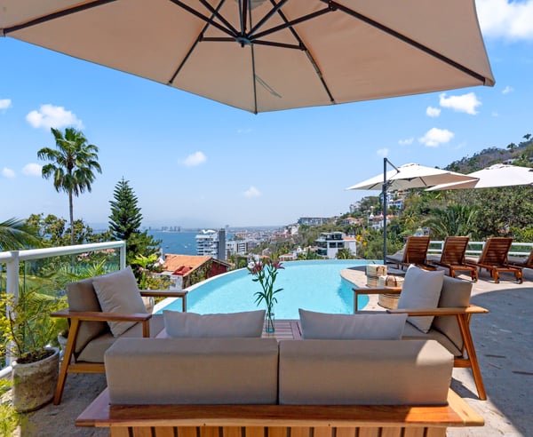 Welcome to Casa Paakat! Located in the beautiful hillside of Conchas Chinas, this luxury home is sure to give you the ultimate Mexican experience. Enjoy all the property features that come with this six-bedroom, seven-and-a-half-bathroom house, such as a large, outdoor pool, and a breathtaking balcony view.