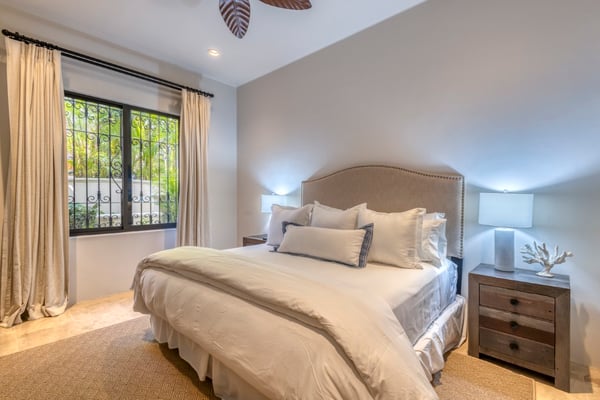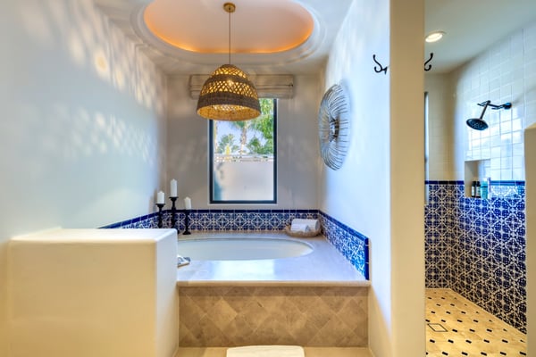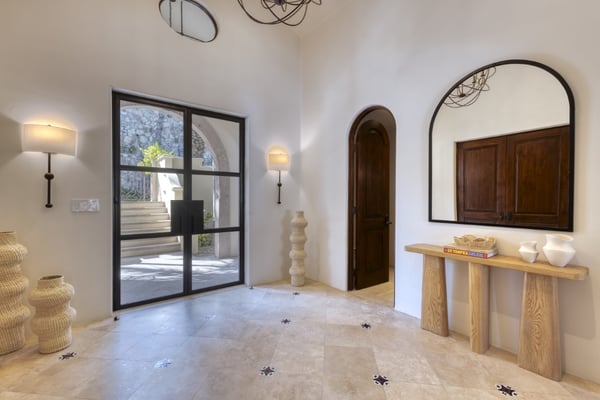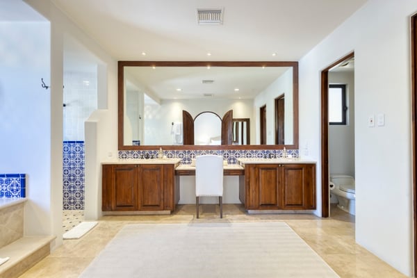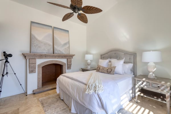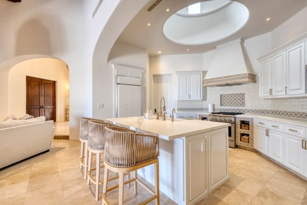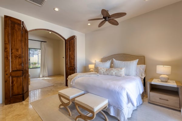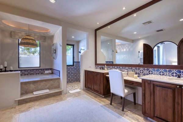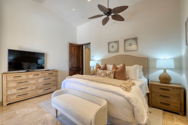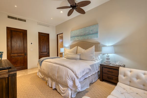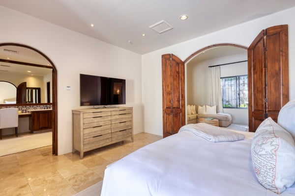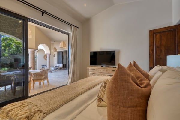Welcome to Cielos 84: An elegant and private 5-bedroom villa located in the coveted Villas del Mar neighborhood of Palmilla in San Jose del Cabo. This luxurious home features a stunning pool area with plenty of lounge seating. Complete with a sparkling pool, hot tub, grill, and outdoor fire pit, you can spend plenty of your time in the warm Los Cabos sun. The elevated walls also allow for full privacy and relaxation as you gaze out over the ocean below. Venture into the main room of Cielos 84 to find the beautiful open kitchen, elegant décor, and dining area. This space is ideal for enjoying a warm cup of coffee with your guests in the morning as you plan out the day. The kitchen also has a plethora of counter and fridge space to make full meals or to prep some poolside snacks. Next to the kitchen and dining area you’ll find the couches and smart TV, perfect for an afternoon nap or a late-night movie. Inside the lovely primary suite is a king bed, access to the pool area, a private lounge space, and a gorgeous en-suite bathroom with a jacuzzi. There’s nothing better than a night of rest and relaxation after a long day in the sun. Each of the other bedrooms have an en-suite bathroom and shower as well. The secondary suite has direct access to the garden and the guest room also has direct access to the pool area. Included in your stay at Cielos 84 is a 6-person golf cart. Inside Palmilla, explore some of the finest shops, restaurants, and spas that Mexico has to offer.
