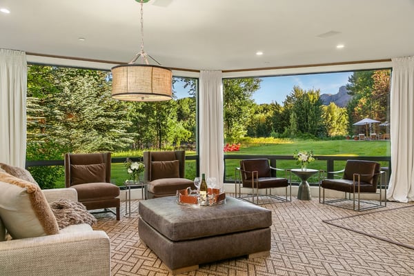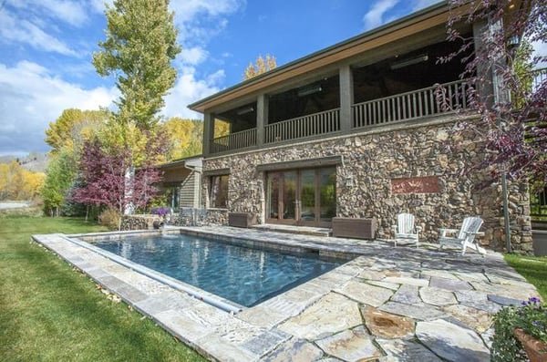 Villa Fleuve is well-suited for large social gatherings, with plenty of common areas, including a media room, gym, and office. Nine bedrooms spread across multiple buildings provide added privacy, while top-notch amenities such as a wine room, chef's kitchen, and butler's pantry ensure that every need is met. For outdoor recreation and relaxation, Villa Fleuve includes a glass greenhouse, toy barn, pool, and spa. Located in close proximity to notable destinations, it is the perfect retreat for those looking to reconnect with nature or conquer new adventures. Experience the pinnacle of alpine luxury at Villa Fleuve, where breathtaking beauty and modern comfort converge. Nestled in the breathtaking alpine landscape of Sun Valley, Idaho, Villa Fleuve is an exceptional retreat that redefines luxury living. This magnificent gated compound offers an unparalleled experience of natural beauty and modern comfort, comfortably accommodating up to 22 guests. From the wildflower meadows to the mountain views, every inch of Villa Fleuve exudes a sense of serenity and tranquility. Whether you're lounging by the river or cozying up next to a warm fire, you'll be immersed in a world of natural wonder.