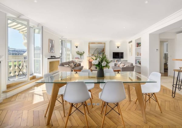 This apartment nestled within the Palais Royal stands as an exceptional rarity! Vendome Duplex is an exquisite gem located opposite the Louvre and just a few steps from the Opera, placing you in the prime epicentre of historical Paris. Over time, its residents have encompassed notable personalities including Cardinal Richelieu, King Louis XIII, Louis XIV, and the Bonaparte family. Vendome Duplex is located on the 3rd floor, which you can reach via an elevator followed by a short set of stairs. This amazing apartment spans two levels and features three bedrooms, including one with a king-size bed that can be split into two singles, as well as three private bathrooms and an additional powder room. The primary bedroom also boasts a spacious terrace. The living and dining area is open and flooded with natural light, and it connects seamlessly to a well-equipped kitchen. The apartment has been upgraded for your utmost comfort, ensuring a memorable stay.