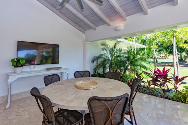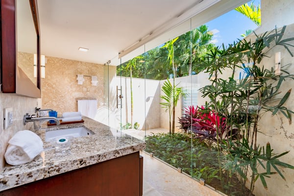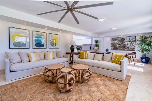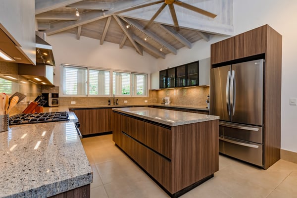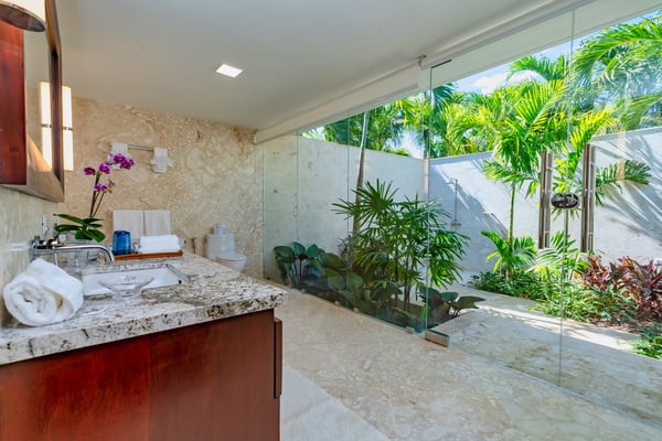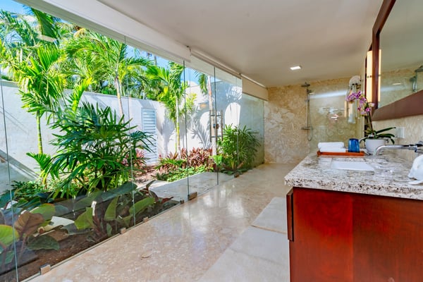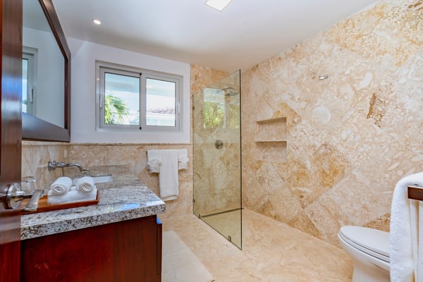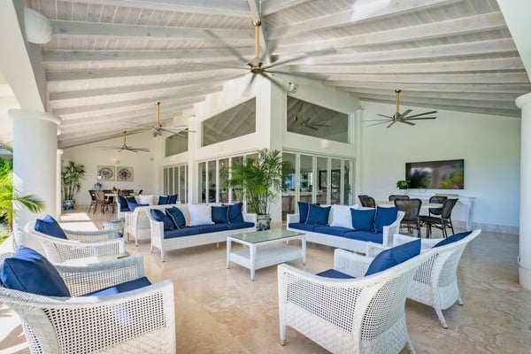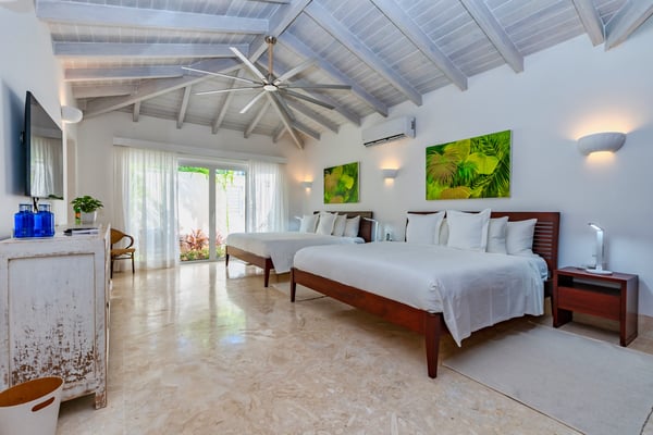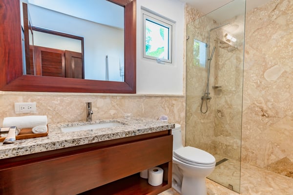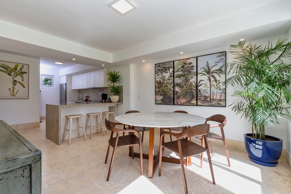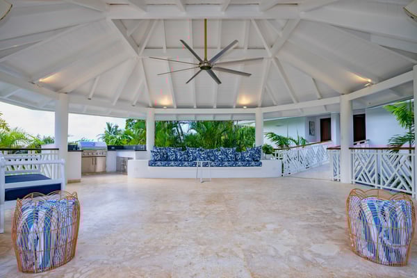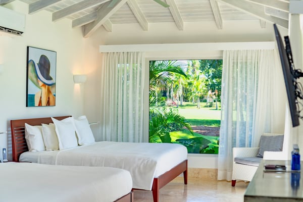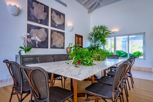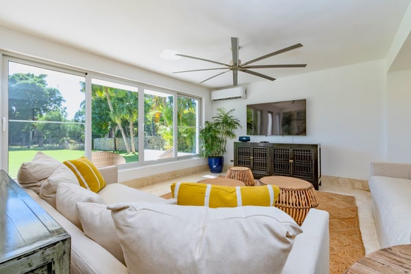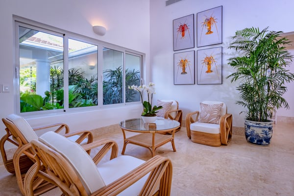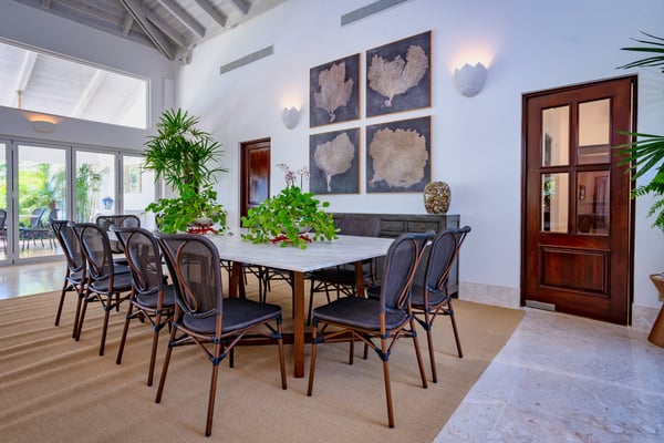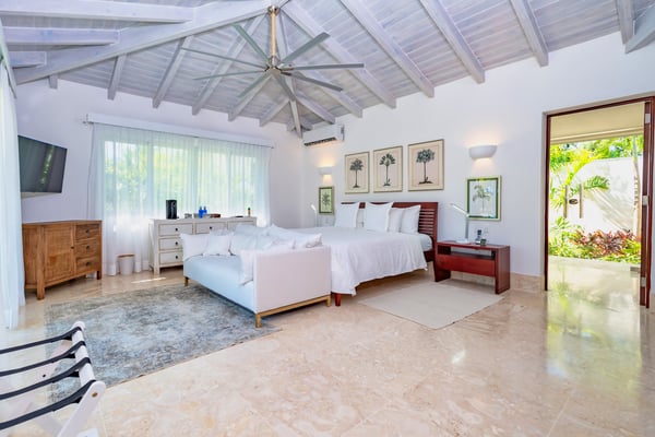 All guests must register with the Casa de Campo Concierge office, and for a small daily fee ($30 per adult per night & $15 per child per night), are granted access to resort areas and amenities. Casa de Campo Resort facilities and amenities include golf courses ($), the fitness centre ($), racquet center ($), restaurants ($) and bars ($). Contact Rental Escapes for more information about pricing. Los Mangos is an extraordinary villa that seamlessly blends tropical outdoor beauty with thoughtfully designed interiors, creating spaces that are both expansive and intimate. Perfect for making lasting memories with family and friends, this welcoming retreat offers a one-acre patio ideal for family games, sports, or hosting corporate retreats and events. Begin your mornings with peaceful walks through the lush gardens or the enchanting Casa de Campo surroundings. Unwind with a personal yoga session or enjoy a soothing massage on your room’s terrace. With a dedicated chef crafting everything from local specialties to global dishes for breakfast, lunch, and dinner, and a villa manager ensuring your every need is met, you can relax and fully immerse yourself in this luxurious experience. Each bedroom is designed for ultimate comfort, featuring eco-friendly, temperature-regulating mattresses and 800-thread-count plush linens for a restful night’s sleep. Smart TVs with cable and Amazon Echoes in every room let you personalize your entertainment and ambiance. The villa’s climate-controlled living and dining areas provide a cool and comfortable escape, ensuring a perfect balance of luxury and relaxation throughout your stay at Los Mangos.