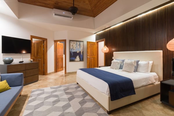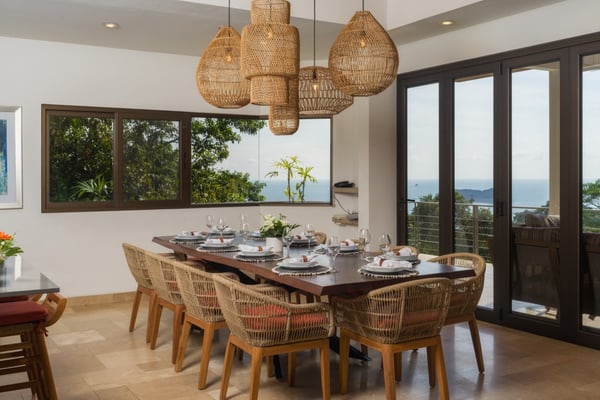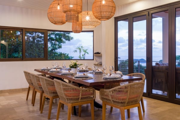 Welcome to Casa Anjali, your exclusive getaway in Manuel Antonio, Costa Rica. Nestled in lush rainforest surroundings, this luxurious seven-bedroom villa offers the perfect balance of luxury and nature. With unparalleled design, upscale amenities, and personalized services, Casa Anjali guarantees an extraordinary vacation experience. As you enter through the private gate, you'll be captivated by the contemporary design of the villa. The open-plan living, dining, and kitchen area with vaulted teak ceilings sets the stage for unforgettable gatherings. The modern kitchen features granite counters, high-end appliances, and a breakfast bar, making it a breeze to prepare meals yourself or opt for a private chef to indulge your taste buds. Each of the six elegant bedrooms is a sanctuary of comfort and style, boasting floor-to-ceiling glass doors revealing stunning views of the ocean and rainforest. With three king bed suites, three flexible bedrooms with king beds that can be separated, and an additional queen bed, Casa Anjali easily accommodates up to 14 guests. Each bedroom offers a private bathroom, walk-in closet, and terrace, ensuring a peaceful retreat. On the lower level of the villa, you'll find a covered outdoor BBQ kitchen, a well-stocked drink station, and an inviting dining area overlooking the distant rocky islets. The infinity pool, nestled within impeccably maintained grounds and surrounded by lush rainforest, invites you to unwind and marvel at the captivating wildlife that frequents Casa Anjali. From monkeys and sloths to vibrant tropical birds, nature comes to life in this magical setting. Immerse yourself in the natural beauty of Manuel Antonio, famed for its incredible biodiversity and pristine beaches. Embark on hiking trails in Manuel Antonio National Park, relax on powdery sand beaches, or set off on snorkeling and diving adventures to discover the vibrant underwater world. Enhance your stay with the services of a private chef, who will delight your taste buds with exquisite meals crafted using the freshest local ingredients. With breathtaking views, a serene ambiance, and access to incredible leisure activities, Casa Anjali offers an unparalleled vacation experience. Book now and embark on an extraordinary journey where luxury and nature intertwine at Casa Anjali in Manuel Antonio, Costa Rica.