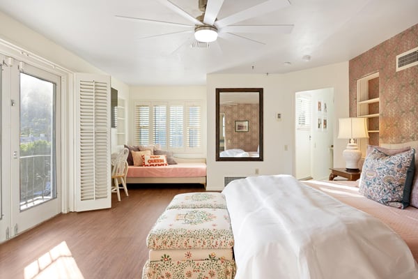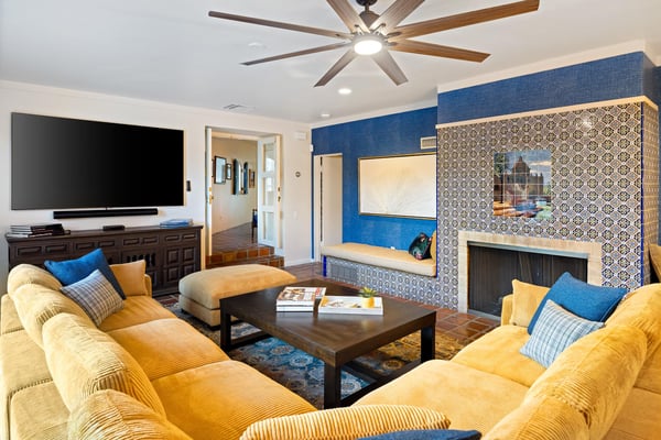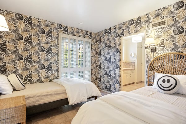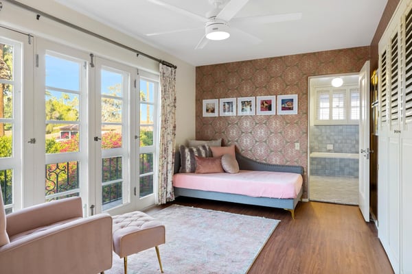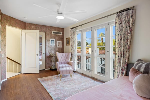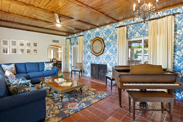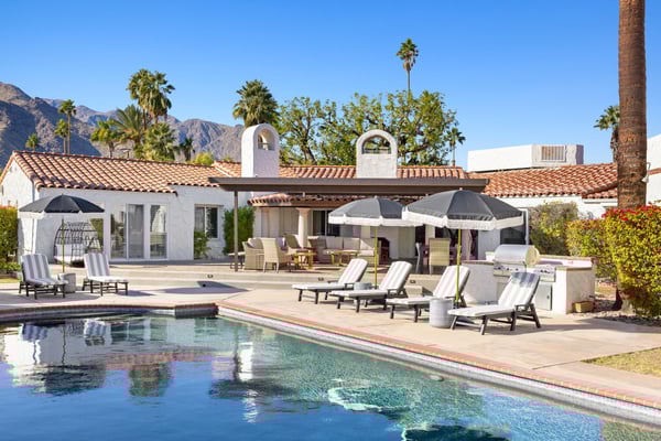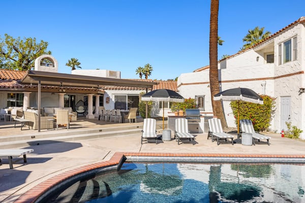 Let worries slip away at Ciao Bella Estates, a six-bedroom, seven-bathroom Palm Springs luxury home that sleeps 12. Experience top-tier golf courses, unique boutiques, delicious eats, and desert fun under the soaring San Jacinto mountains. Guests will love that this pet-friendly home entertains the whole group with a billiard room, pool, and tennis court! Spanish architecture, modern design, and colourful motifs mix throughout this historic two-story home. In the luxurious living room, a piano, a gas fireplace, and a spacious sectional create an intimate space for the entire party to gather. A slider door connects to the secluded patio. Spend the day worshipping the sun beside the pool and sitting spa or lounging in the shade with a book and a cold drink on the outdoor couch. The built-in grill calls for a lunchtime barbecue and eating alfresco at the 12-person outdoor table! After relaxing, prepare for a friendly game on the tennis court or the pool table in the billiards room. With two kitchens—one equipped with two refrigerators and a Thermador six-burner flat cooktop—guests have plenty of space to cook a sumptuous feast. The dining table seats 12 and there is additional seating in the breakfast nook. As the day winds down, relax in the family room on the plush sectional while watching the 85” Smart TV while enjoying the wood-burning fireplace. A washer and dryer in the laundry room are convenient for longer stays. Of the five guest bedrooms on this floor, 3 have queen beds, 1 has a king bed, and 1 has 2 twin beds. There is a primary bedroom at the front of the house with a king bed, a private bathroom, bar, and access to the pool. Up on the top floor, discover one bedroom with a king bed, a private bathroom, and mountain views. Plus a Bridal Room with a day bed. Both have balconies overlooking the entire estate. Multiple living spaces and a private patio and pool make Ciao Bella Estates ideal for large groups looking to make memories in Palm Springs. Located in the historic movie colony, this home is within walking distance to downtown. There’s parking for up to 6 cars in the driveway, so guests can easily explore the nearby areas. Book this California oasis today! City of Palm Springs No. 5553
