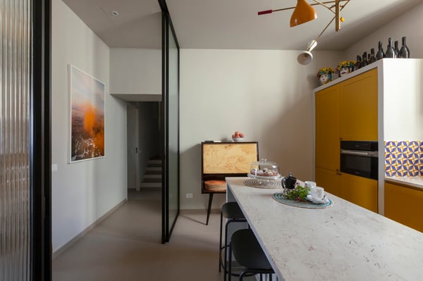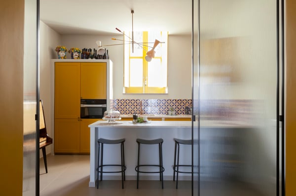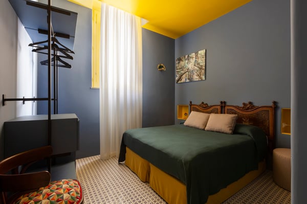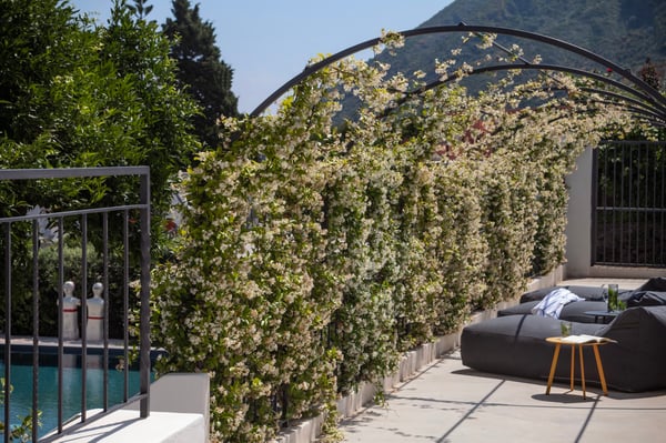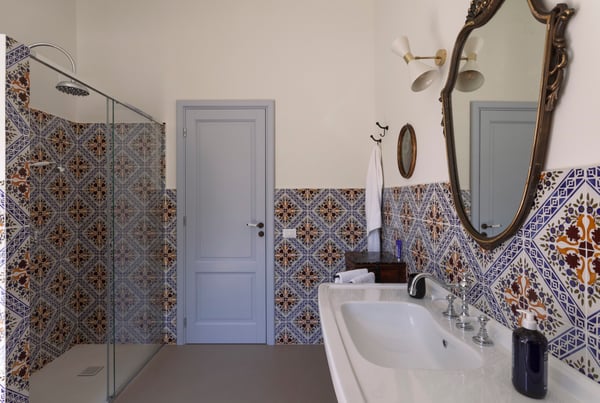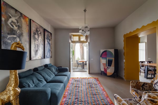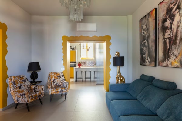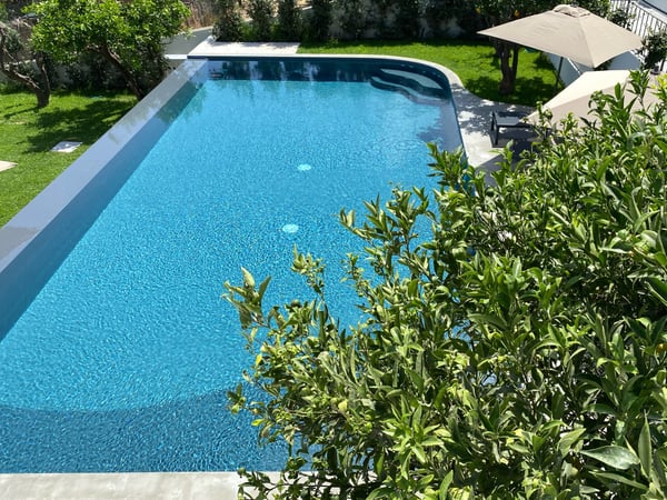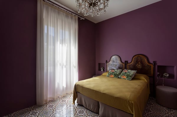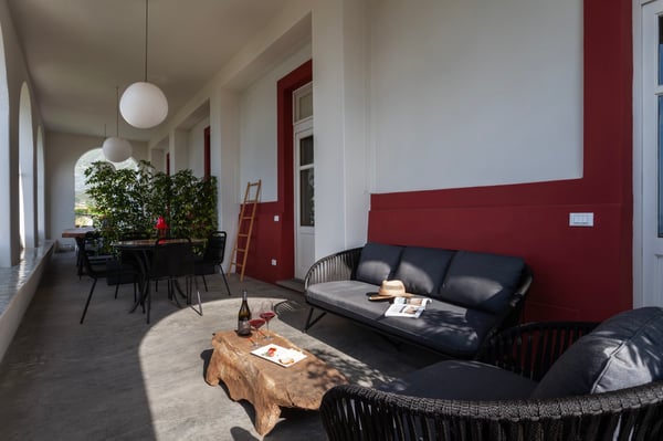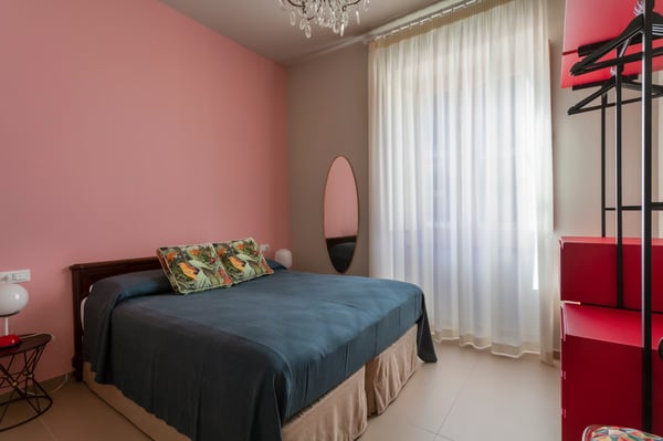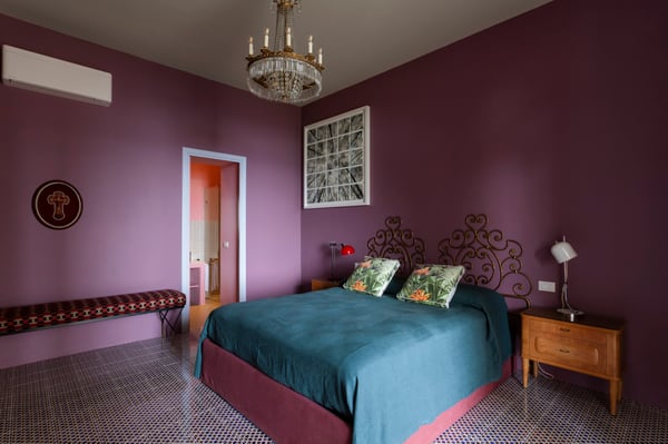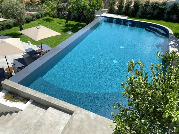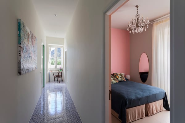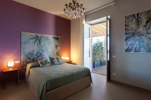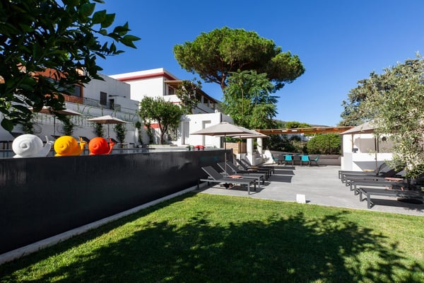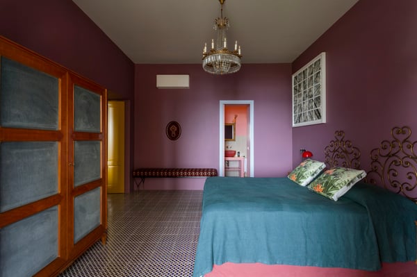 La Segreta has an important history: former barrack of Carabinieri, its architecture reflects past glories. But that’s not all: a local inhabitant told us that during some researches on Malfitan houses he came across a testimony that would see La Segreta also as a former convent of nuns. Whether it’s true or not, we like to think that La Segreta has witnessed many stories and we can’t wait to add yours. The villa (360 square meters) on two levels is divided into three private suites (Aria, Acqua and Terra) and a living area of 90 square meters. Aria and Acqua are on the upper floor, with direct access to the terrace and its superb sea view; Terra and the living area are on the lower floor, both with direct access to the Aeolian porch and the garden. Each suite (90 square meters) consists of two double bedrooms, two finely decorated bathrooms with shower, and a living room with a small kitchen equipped with dedicated kitchenware for light meals; the warm and welcoming living area consists of a main kitchen, a lounge, a dining room and a bathroom. Upstairs, Aria, with its pink and green shades, amazes with the sophisticated tub in the main bedroom, perfect for enjoying a relaxing bath, while Acqua offers new perspectives with its hand-crafted desk overlooking the island of Panarea. Both Aria and Acqua have direct access to a wide terrace, where you can sunbathe in total privacy, have a coffee sitting at the hand-painted lava stone tables, protected by the branches of a beautiful maritime pine, or enjoy a sea-view aperitivo at sunset. Downstairs, Terra, cozy and unusual, has a personality of its own; its two bedrooms, full of well-balanced contrasts induce a restoring but creative sleep. Terra has direct access to the porch and the garden. La Segreta is a hymn to open-air lifestyle. The Aeolian porch is the perfect choice for breakfast while enjoying the stunning view over the rooftops to the blue of the sky and the sea. It leads to the garden, where citrus plants and fragrant flowers frame the infinity pool, twelve meters long and six meters wide. The pool area is equipped with a pergola for alfresco dining. Perfectly integrated into the vegetation, two small buildings house the technical and laundry room. CIN: IT083043A182MXMT52