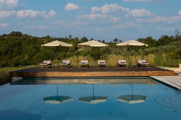 Located on over five acres of private family property, the Baracija estate gives a new meaning to the word magic. In the heart of Istria, on top of a hill, surrounded by centuries-old Istrian nature, you will find your new holiday home among carefully planted vineyards and olive groves. From the moment you reach the arched entrance to the estate and see Baracija, you will fall in love. The Istrian peninsula is intersected by small two-lane highways and traditional unpaved “white roads” that meander through the historic towns and green hills. Baracija is located in the village of Krasica, on a private white road situated on a hillside, where the only neighbours are groves of centuries-old olive trees and vineyards that rustle in the wind beneath the terraces. Baracija welcomes you with the best that life has to offer. A place for gathering with family and friends, along with intimate spaces for solitude. The gracious main house and playful guest house are connected by a communal outdoor space. The impeccable service of your hosts is at your disposal to do everything to make you feel relaxed and at home. At Baracija, spring will greet you in shades of light green, soft yellow and red. You will look at the bright blue sky and enjoy the scents of flowers that only appear after winter. In summer, nature will scream with colours. Dark green hills, bursting vineyards, flowers of all imaginable colours and a bright blue sky that will turn amber-yellow in magical sunsets. In the autumn, beautiful in the colours of copper and earth, when nature slowly prepares for sleep and evokes the whiteness of winter. Baracija will provide you with a journey through all the colours of nature, with its stone walls and gardens that live all year round. Baracija will provide you with a true vacation with a spacious garden, swimming pool with sun deck, private wellness with fitness, a large sports field and many activities on the property. The estate is surrounded by small roads that invite you to walk or ride a bike, hiking trails, and historic towns to explore. Istria is the place of the most delicious food and the finest wines, and the capital of flavours and aromas that will accompany you every day during your stay. Originally a nineteenth-century Stanzia, Baracija started as a place for agriculture that evolved into a place for leisure. Today, the estate is completely renovated with every modern luxury in a historically respectful style. It’s almost a thousand square meters of main and the guest house can accommodate sixteen guests. The main house welcomes ten guests through four floors, while the guest house offers additional privacy and peace, with a common living room, 3 bedrooms, terraces and a perfect view of nature. Adjacent to the main house is an outdoor summer kitchen featuring an open fireplace with an asado grill, a massive communal table, and a terrace that will make socializing unforgettable. The original house and its history have been carefully preserved during the renovation, using locally sourced wood and stone - the original materials that built a thousand years of Istrian history. You will be awakened by the scents of wood and fine cotton, fruit and olives, earth and flowers. Baracija is a dedication to a history it wants to tell in the present and, preserve for tomorrow. The owners created Baracija to be the most beautiful estate in Istria. At the same time, nothing in it is exaggerated, unnecessary or inconsistent. Our wish is for you to see the hospitality of Istria. We will strive to meet all of your expectations and to have the memory of Baracija always be a pleasure. All of this is part of the story that Baracija wants to tell. Each painting on the walls of Baracija carries its own story. Each sculpture lives in its own space and makes it richer. The nature around the estate is the backdrop for the white walls of Istrian stone framed by wooden windows. There is a density of colours and textures, inspired by abundance, simplicity, and the ease of the “bijela zemlja” or white earth of Istria. Everything is there, in one place. Stanzia is a complex based on a family cooperative connected with agriculture in Istria. Eight bedrooms on one large estate. Dining rooms, chef’s kitchens, wine cellar and tasting room, private cinema, numerous terraces and common areas. All are intended only for the enjoyment of fulfilling conversations, a connection with nature, food, drinks and art. Located in a pristine part of Croatia that is close to everything and far from everyone. All of this makes Baracija special and remarkable. But the greatest quality of Baracija is the sense of peace and tranquillity it provides to its guests. It is beautiful on a sunny summer afternoon when there is no wind, the air seems to stand still and the treetops move the shadows on the hot Istrian soil. It is stunning in winter when it rains and the wind blows through nature while you gaze at the fire with a glass of wine and a book long forgotten. It is gorgeous in spring when colours and scents are playing with flowers and butterflies. The fall brings distant rumble of tractors and shouts of winemakers and olive growers collecting the harvest. Baracija is always amazing. Discover it and discover its remarkable Serenity. Baracija welcomes you.