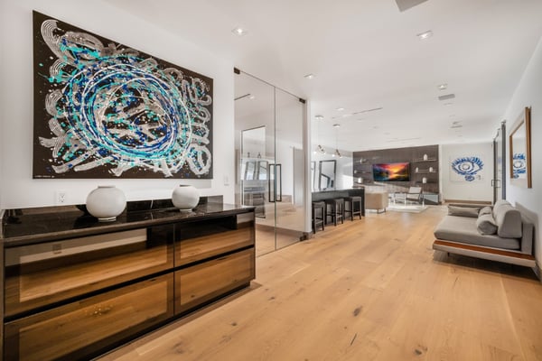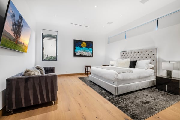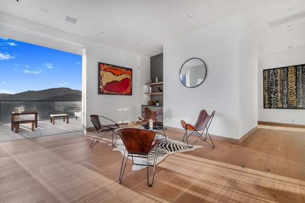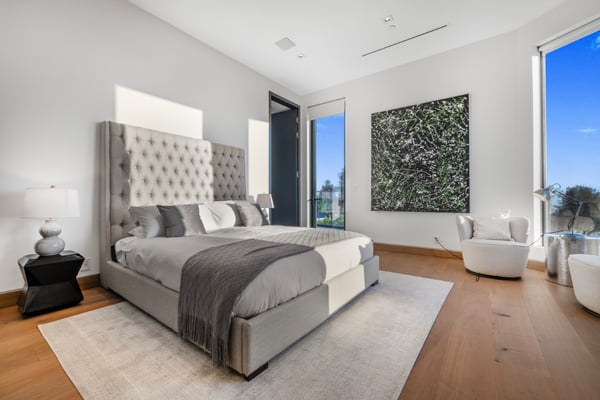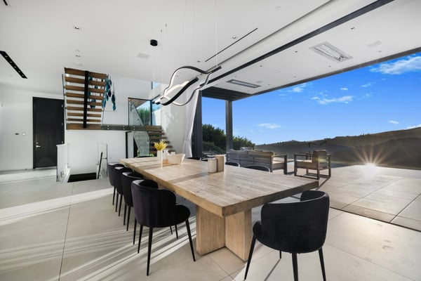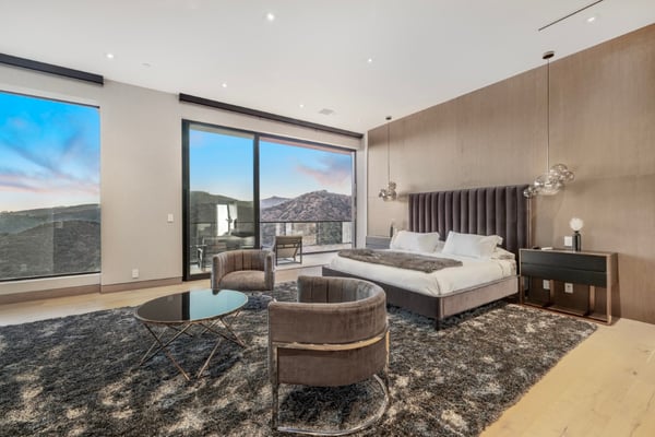 Nestled atop the picturesque hills of prime Bel Air, this contemporary marvel showcases an unwavering commitment to meticulous design and an attention to detail often absent in today's new construction. Offering a sensory feast with textured vistas of the Santa Monica Mountains, Getty Center, the vast expanse of the ocean, and the majestic San Gabriel mountains, this residence redefines luxury living. As you step foot into this graceful, luminous, and expansive abode, you'll embark on a journey into the epitome of opulent living. The first floor beckons with awe-inspiring panoramas, facilitated by a motorized Fleetwood slider that unveils an infinity pool and spa, seemingly suspended in the heavens. Culinary creations come to life in the designer kitchen adorned with Miele appliances, while the grand dining area becomes the backdrop for unforgettable gastronomic experiences. Descend to the lower level, a realm of entertainment par excellence, featuring a screening room, a wine enclave, a fully stocked bar, a sprawling deck, and welcoming guest accommodations. Ascend to the second level, where three impressive suites await, including the breathtaking master suite, commanding unique vistas and boasting a sumptuous master spa and a designer's dream closet. Upstairs, an oasis of tranquility emerges in the form of a rooftop balcony that stands unrivaled in Bel Air, complete with a cozy fireplace and a barbecue area. Convenience is enhanced by a 4-stop elevator, and the entire residence is adorned with designer finishes, including exquisite Missoni wallpaper and towering limestone walls. HSR24-003488