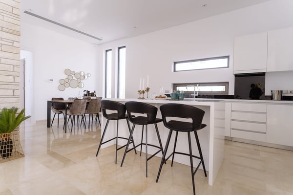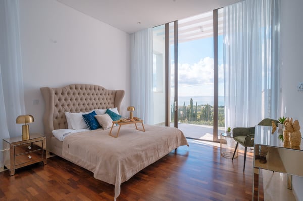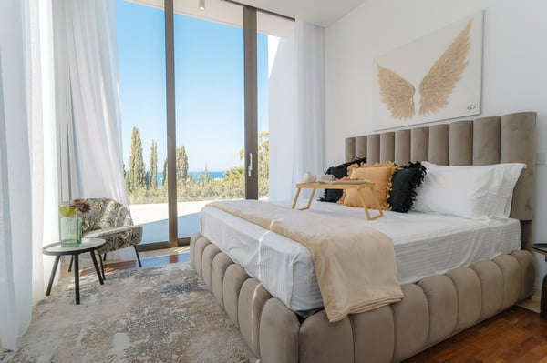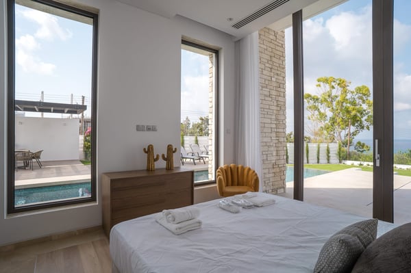 On a lush plot of land, our Hillside villas with three bedrooms nestled amongst lush gardens, just a short walk from Cap St. Georges Hotel & Resort. There is an enviable Mediterranean lifestyle here, which attracts dynamic and discerning individuals from all over the world looking for relaxation and recreation. Rustic and rural yet thoroughly contemporary thanks to the streamlined architectural lines and high-end finishes, these three-bedroom villas stand proudly at the end of a gated pedestrian path. The ground floor is composed of a fully equipped kitchen, dining area, and smart, open-plan living room with a comfortable sofa suite and a flat-screen TV. The villas are flooded with natural light and open onto a multifunctional outdoor space with a large private pool, pergola with seating, and sunbathing area. Each of the villas' three double bedrooms has an en-suite shower and can comfortably accommodate up to eight guests. Fine furnishings have been added to the villas' bedrooms. Please note that all photos are indicative and property allocation might vary depending on availability.