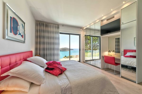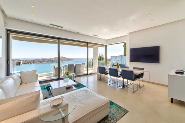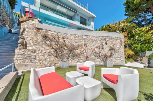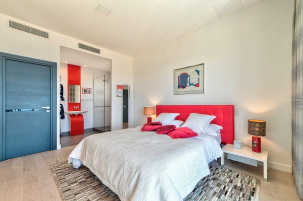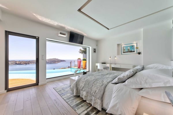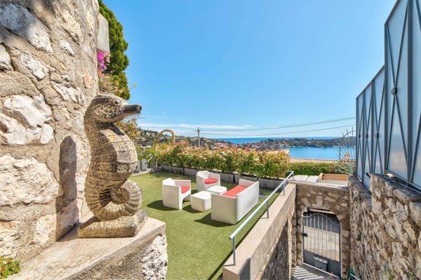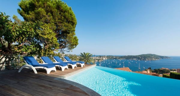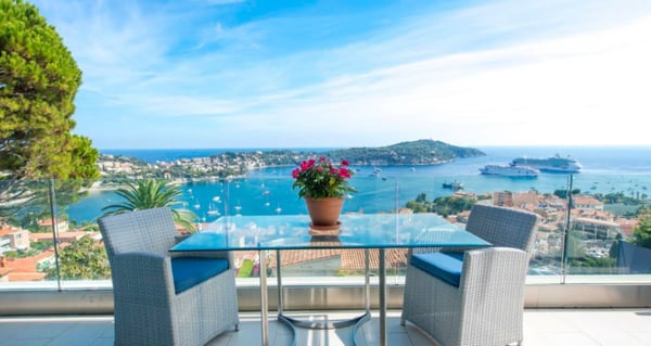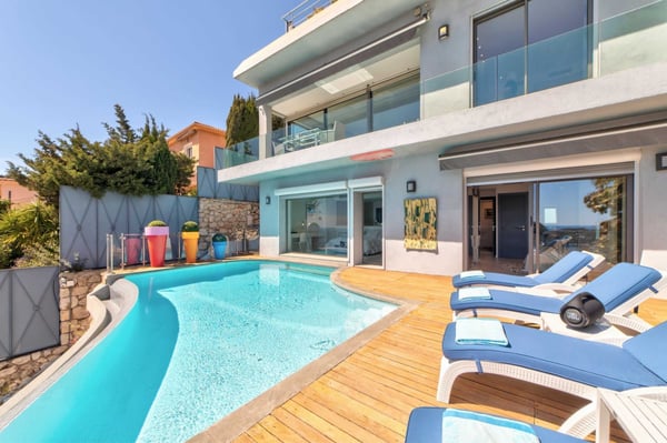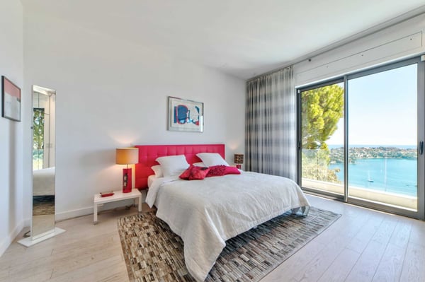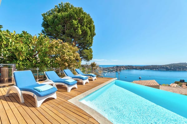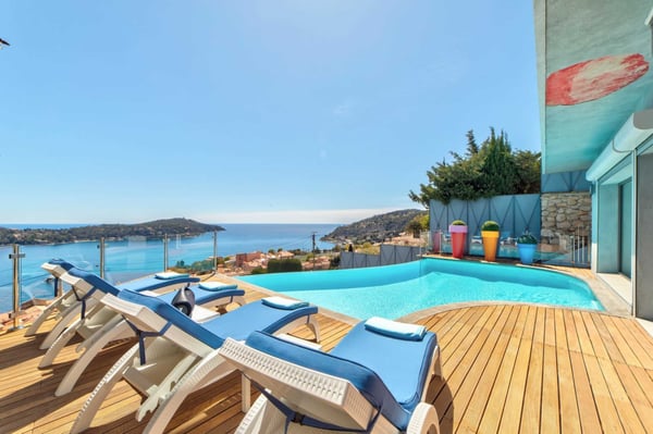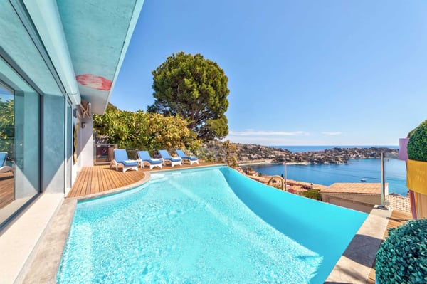 Perched on a hillside overlooking the shimmering Mediterranean Sea, the bay of Villefranche and Cap Ferrat, this exquisite, luxury family villa is a jewel of contemporary design and state-of-the art facilities, within walking distance from the beach, shop and restaurants. This contemporary design property is located just 15 minutes from Nice and Monaco, 25 minutes from Cannes and 40 minutes from the Italian border. It is situated in a central location from which to visit some of the most exquisite perched villages in all of France. Arranged over three levels starting from the top floor, the accommodation comprises four luxury ensuite bedrooms, bright and spacious living areas with a striking sea view and a splendid heated infinity pool.