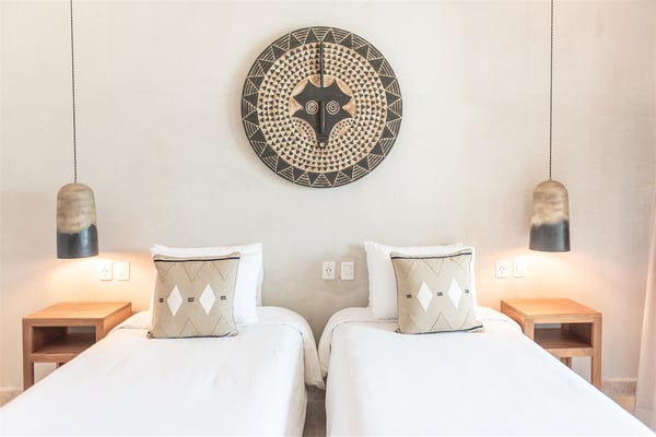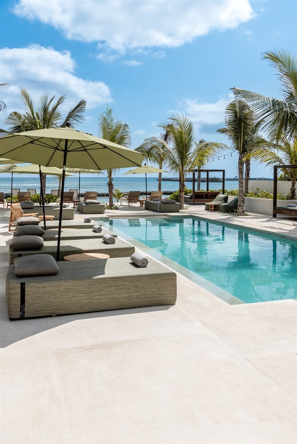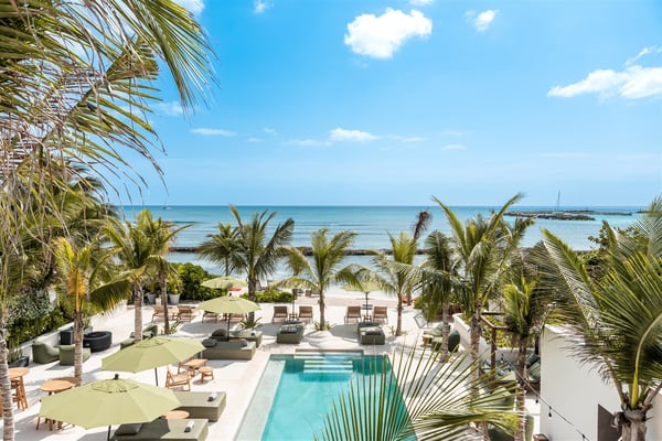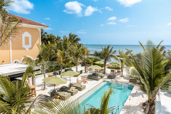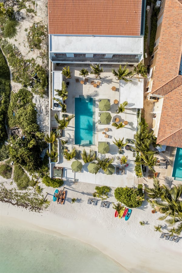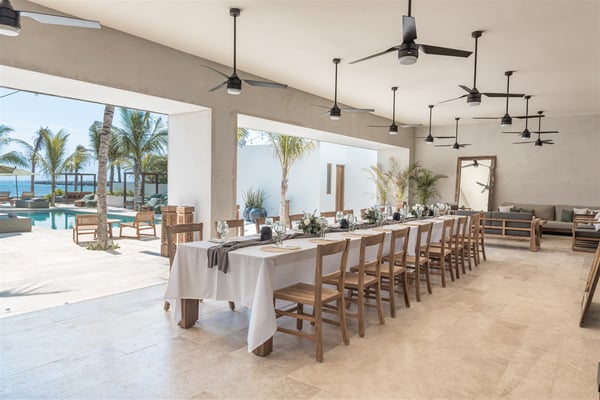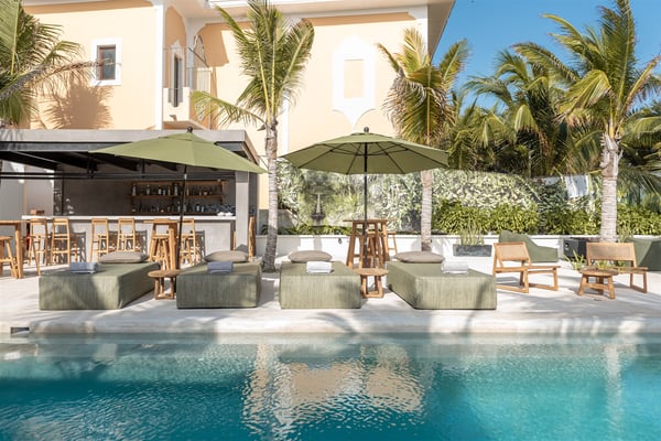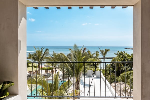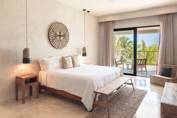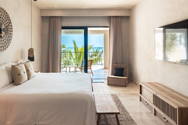 The Hacienda is inspired by the Jaguar held sacred in Mexico since ancient times. This sleek and exotic fully staffed villa offers guests the ultimate luxury retreat. With twelve sumptuous suites, you will experience blissful relaxation. Enjoy warm hospitality, exquisite cuisine and a unique sensorial experience at Hacienda Jaguar. Your very own mixologist will delight you with your favorite cocktails while enjoying mesmerizing ocean and beach views! Each Hacienda is standalone and may be rented with five suites or more depending on the time of year, exclusively for you and yours. For larger groups, destination weddings, celebrations, and retreats Hacienda Jaguar may be rented alongside Hacienda Magica, Hacienda Corazon, and Hacienda del Mar. Hacienda Jaguar boasts a huge poolside area, outdoor bar and covered terrace. The Luxury Estate offers 51 suites for over 100 guests and can host events for up to 100-150 guests. Whether lounging poolside or strolling along the palm-fringed beach, Hacienda Jaguar provides a tranquil oasis for those seeking a truly indulgent escape.
