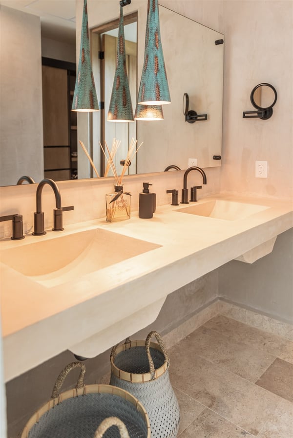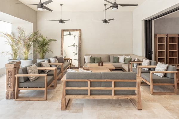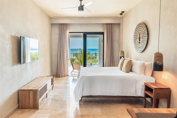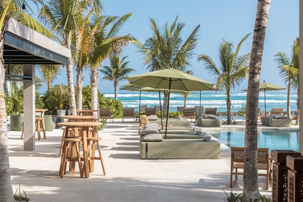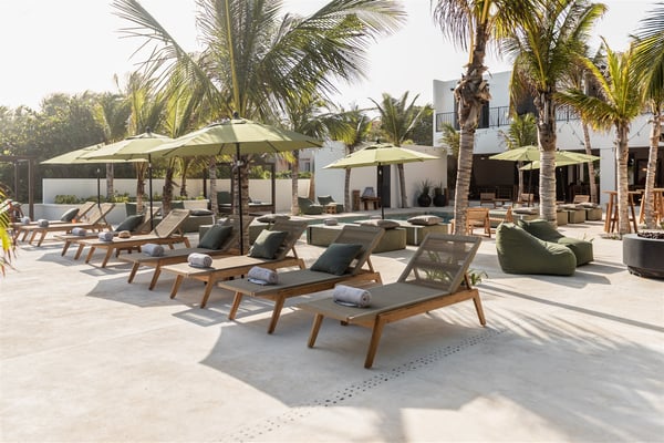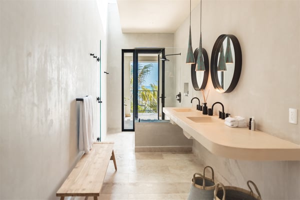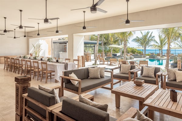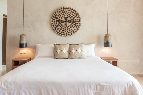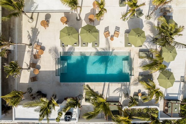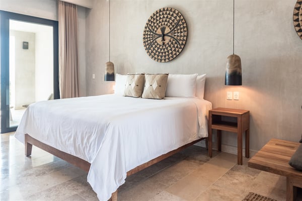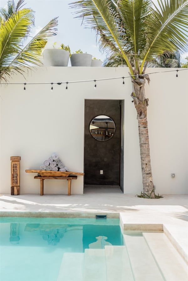 The Hacienda is inspired by the Jaguar held sacred in Mexico since ancient times. This sleek and exotic fully staffed villa offers guests the ultimate luxury retreat. With twelve sumptuous suites, you will experience blissful relaxation. Enjoy warm hospitality, exquisite cuisine and a unique sensorial experience at Hacienda Jaguar. Your very own mixologist will delight you with your favorite cocktails while enjoying mesmerizing ocean and beach views! Each Hacienda is standalone and may be rented with five suites or more depending on the time of year, exclusively for you and yours. For larger groups, destination weddings, celebrations, and retreats Hacienda Jaguar may be rented alongside Hacienda Magica, Hacienda Corazon, and Hacienda del Mar. Hacienda Jaguar boasts a huge poolside area, outdoor bar and covered terrace. The Luxury Estate offers 51 suites for over 100 guests and can host events for up to 100-150 guests. Whether lounging poolside or strolling along the palm-fringed beach, Hacienda Jaguar provides a tranquil oasis for those seeking a truly indulgent escape.