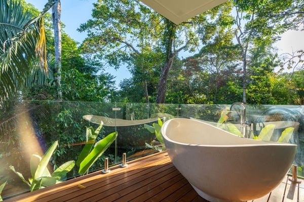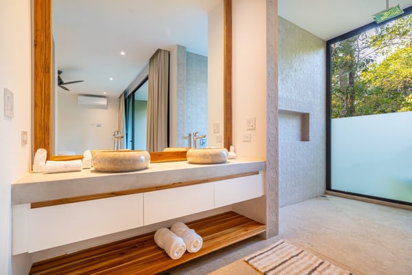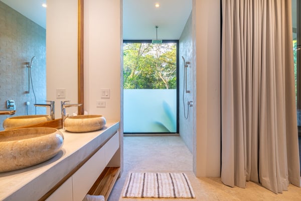 Welcome to Casa Colibri. This stunning ocean-view villa features everything you need for a relaxing and unforgettable vacation, while perched in a pristine jungle setting. Surrounded by jungle, Casa Colibri offers a unique and immersive experience in nature. Wake up to the sounds of tropical birds and spot playful monkeys as you explore the lush surroundings. You'll also enjoy stunning views of the famous Marino Ballena National Park, known for its beach area shaped like a whale's tale. It's a sight you won't want to miss. Getting to Casa Colibri is a breeze, unlike many other Oceanview properties in the area, as there is no requirement for a 4x4 vehicle. The property can be easily accessed by any type of vehicle. Each of the four bedrooms in Casa Colibri is equipped with a comfortable floating king-size bed (with the option to split one into two twin beds) and an ensuite shower/bathroom. Additionally, each bedroom has its own private balcony, offering breathtaking views of the surrounding area. Located in a private luxury gated community, Casa Colibri provides a truly exclusive experience. With only three homes in the community, you can enjoy peace and privacy during your stay. For added security, there is a night-time guard to ensure your safety and peace of mind. One of the standout features of Casa Colibri is the ocean-view bathtub and shower. Imagine soaking in a luxurious tub while enjoying panoramic views of the jungle and ocean. It's a truly unique and indulgent experience. The villa also boasts a stunning ocean-view infinity pool, complete with Bali-style tiles. Take a dip in the pool and soak up the sunshine while gazing out at the ocean. The large common areas, both indoors and outdoors, provide ample space for relaxation and entertainment. For convenience, Casa Colibri offers a private garage. The villa is equipped with top-of-the-line appliances, including a commercial-size fridge and freezer, perfect for stocking up on groceries or hiring a private chef to prepare delicious meals for you. There is also a top-of-the-line BBQ for those who enjoy grilling poolside. You'll love the water pressure in the rainfall showers, making your showers an invigorating and memorable experience. The entire villa is fully air-conditioned, with individual AC units in each bedroom and a centralized AC system for the common areas. Additionally, guests have access to a washer and dryer for their convenience.