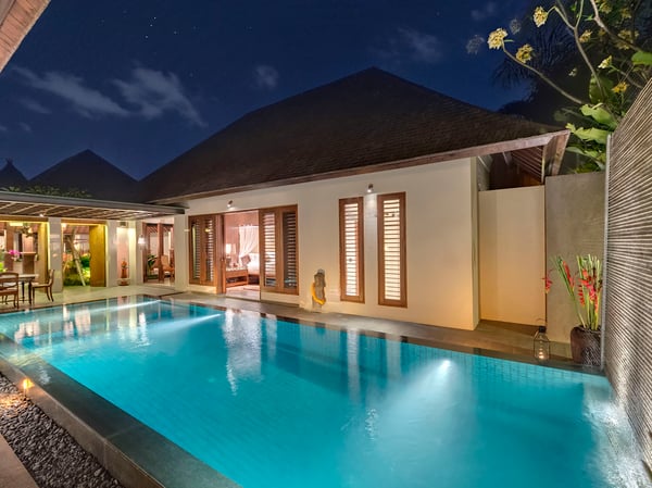The two Des Indes Villas lie within Seminyak’s sought-after Laksmana Villas, moments from Petitenget Beach and some of Bali’s most iconic, restaurants, bars, boutiques and spas. These luxury villas comprise the five-bedroomed Des Indes II and four-bedroomed Des Indes I. Des Indes II offers old Bali-style open-concept living in surroundings that are remarkably quiet given the proximity to Seminyak’s many attractions. With multiple indoor and outdoor living and dining areas and two private swimming pools, the villa accommodates up to 10 adults and four extra children – perfect for extended families and groups of friends who enjoy holidaying together but appreciate their own private space. Villa Des Indes I lies just a two-minute walk away and is distinguished by its heritage joglo that was once the home of a Javanese aristocrat and now forms a palatial living pavilion. The two master bedroom pavilions, which encircle a 21-metre lagoon-style pool, are generously proportioned, with deep verandas and tropical garden showers. Two comfortable guest suites occupy an adjacent two-storey pavilion. Within the villas' pavilions are a wealth of colonial-style furniture, prized antiques, ceramics and artefacts. Counterpointing the heritage influence are more contemporary luxuries, including top-range King Koil mattresses, crisp cotton bedlinen, and satellite channel TVs in every bedroom. Adding to the sense of luxury is a staff team dedicated to making guests feel special. Among them is an accomplished chef who can prepare meals throughout the day according to a reasonably priced menu. And for those who can tear themselves away, classic Bali restaurants and beach bars such as La Lucciola and Potato Head are a short stroll away. Feel the vibrant beat of Bali right at your doorstep. These luxurious villas are in a sensational central location, affording guests with a penchant for nightlife and entertainment, immediate access to Bali’s famed beach clubs and restaurants. If you love great music and a lively vibe, this is the villa for you. Together, the two villas offer nine bedrooms. Click on these links to find out more about five-bedroomed Des Indes II and four-bedroomed Des Indes I, or visit the Des Indes Villas website to find out how the villas can be combined to suit your holiday needs.