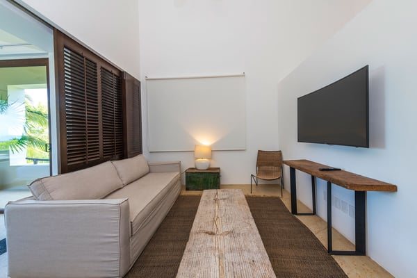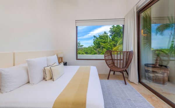 The Premier Golf Membership grants access to Pacifico Golf Course ($), Bahia Golf Course ($), the Tennis Centre ($), the Fitness Center ($), El Surf Club based on min. consumption fee ($), St.Regis Beach Club based on availability and min. consumption fee ($), Pacifico Beach Club, Sufí Ocean Club and Kupuri Beach Club. Contact one of our Villa Specialists for more information. Located within the Las Terrazas community in Punta Mita, Penthouse Pacifico is a luxurious three-bedroom residence offering picturesque views of the golf course and lake. With Premier Golf Membership, you’ll enjoy access to world-class amenities, beach clubs, and golf courses. The penthouse includes daily housekeeping, breakfast and snack preparation, and a golf cart, ensuring that your stay is convenient and enjoyable. The expansive terrace, paired with elegant interiors featuring a gourmet kitchen and a spacious living area, provides the perfect atmosphere for relaxation.