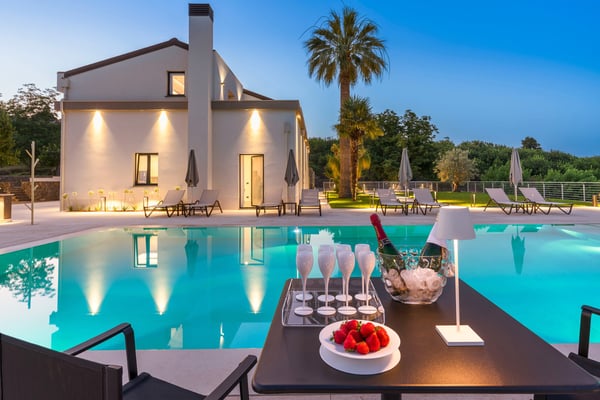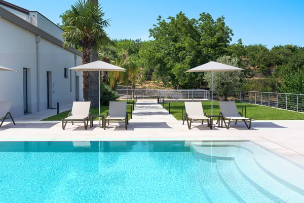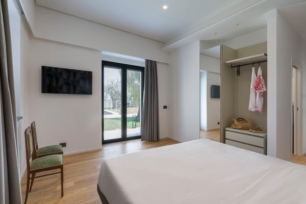 Gianos Villa is an exclusive luxury property with a private saltwater swimming pool, located on the eastern coast of Sicily, just 30 kilometers south of Taormina. Nestled between the slopes of Mount Etna and the sea, the villa is a short drive from the popular beaches of Riposto and Fondachello. Perfect for a relaxing getaway, this stunning retreat is surrounded by spacious, well-equipped terraces and offers breathtaking views of the countryside, with the shimmering sea as a backdrop. The villa's interiors combine premium materials with designer furnishings, infusing each room with style and character. The ground floor features a spacious living area with a lounge, dining space, and kitchen, along with two double bedrooms, each with an en-suite bathroom, a guest bathroom, and a laundry room. The first floor includes an additional lounge, two more double bedrooms with en-suite bathrooms, a fifth double bedroom, a bedroom with a French bed, and a separate bathroom with a shower. Fully air-conditioned, Gianos Villa is equipped with underfloor heating, a fireplace, wireless internet access, smart TV's, a washer dryer, dishwasher, two refrigerators, a coffee machine, and a barbecue, ensuring the utmost comfort and convenience. The villa’s location makes it an excellent base for exploring the Ionian coast’s most beautiful and renowned destinations, including the marine reserve of Isole Ciclopi, Taormina, Catania, and Syracuse. Guests can also venture inland to discover picturesque villages and the stunning natural landscapes of Mount Etna Park. CIN: IT087023B5YVKIDYKC