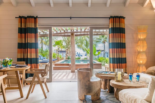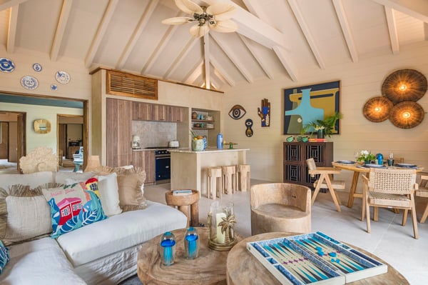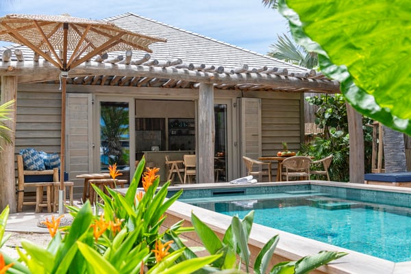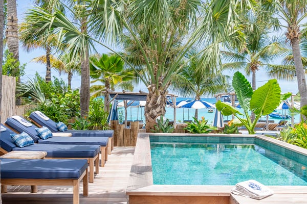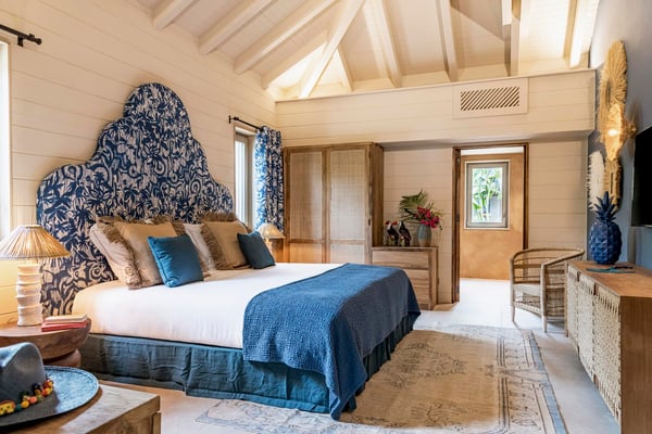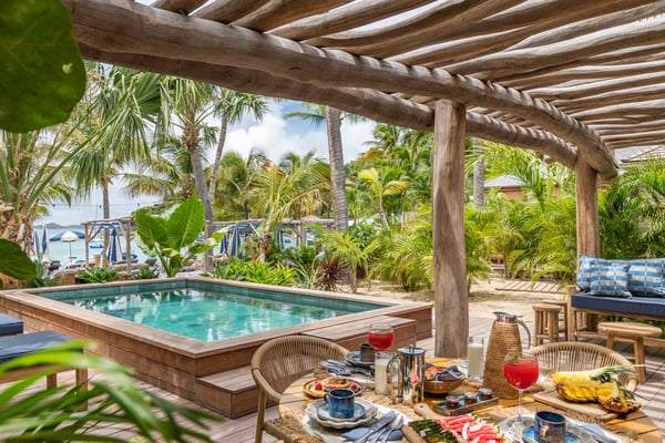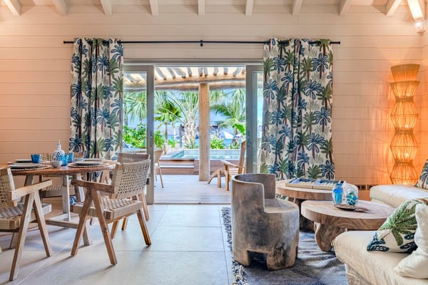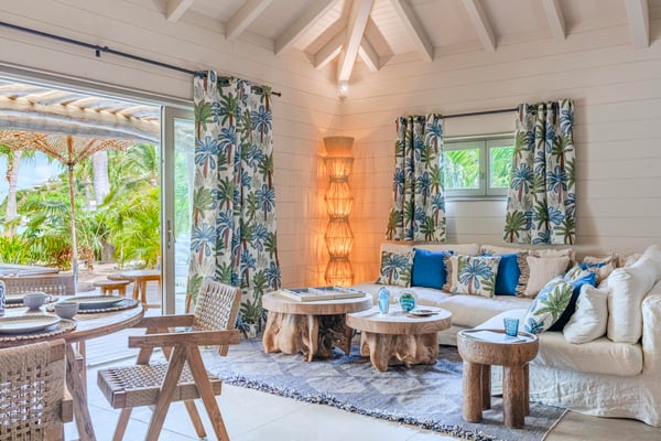 Bohemian Blue is a Caribbean-designed villa located on the Gypsea Beach Club property, in the popular Saint Jean neighbourhood. The villa features a living room with a fully equipped kitchen opening onto a terrace with a heated swimming pool, deckchairs and an outdoor table ideal for enjoying the continental breakfast included every morning. All of it overlooks the ocean and surrounding tropical vegetation. The single-story villa has 2 spacious bedrooms with en-suite bathrooms, all in warm Caribbean style for a guaranteed change of scenery. Thanks to its exceptional location, this villa will be perfect for anyone wishing to enjoy a stay right in the heart of Saint Barth life: beach club, restaurants, stores and access to Saint-Jean beach.