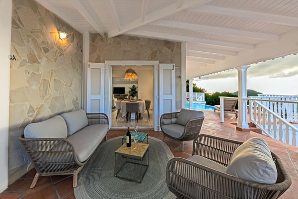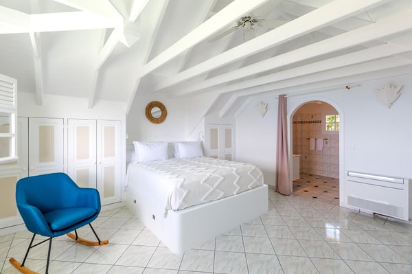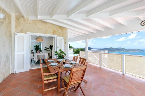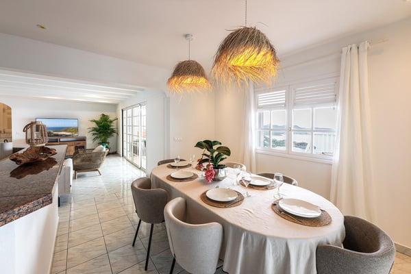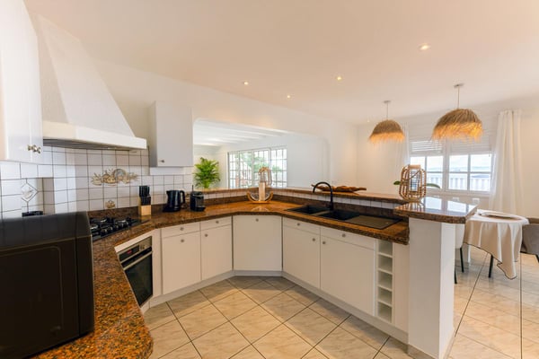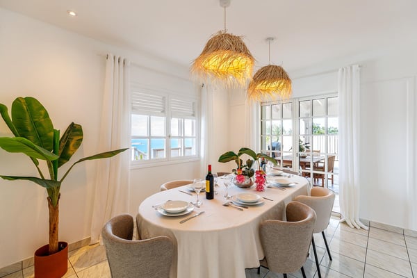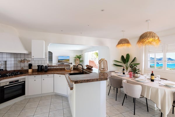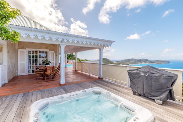 Villa Tam is a magnificent property located on the heights of Vitet, offering a breathtaking panoramic ocean view. This old family home with its authentic Caribbean style and warm ambience is ideal for an unforgettable vacation. The villa features a living room and a fully equipped kitchen, perfect for preparing delicious meals with family and friends. All living areas are air-conditioned. Villa Tam’s main attraction is its terrace with a heated swimming pool and Jacuzzi. You can relax in the water while admiring the spectacular ocean view, creating unforgettable memories. The villa has three comfortable bedrooms. The primary bedroom, on the second floor, has its own private bathroom with a bathtub. The other two bedrooms, on the second floor, share a bathroom, ideal for children or friends travelling together. For those who want to keep active during their vacation, Villa Tam offers a small fitness room equipped with a treadmill and bike, allowing you to maintain your workout routine even away from home. The neighbouring villa Clémentine can also be rented. It has 3 bedrooms and is accessible via a path through the garden. Villa Tam is perfect for couples and families looking for a vacation in idyllic, picturesque surroundings.