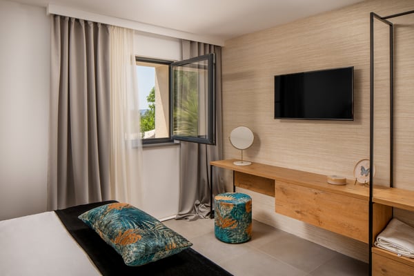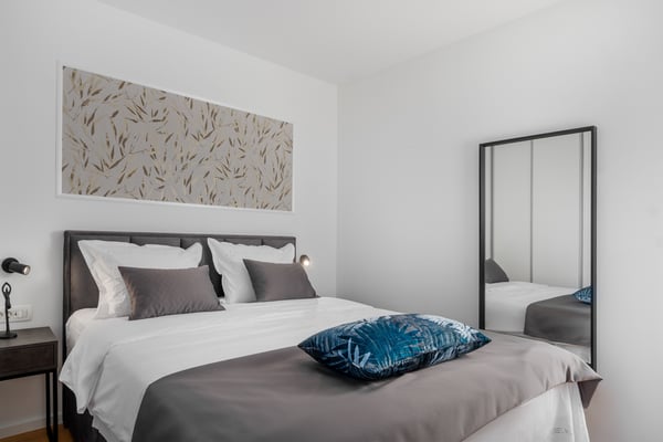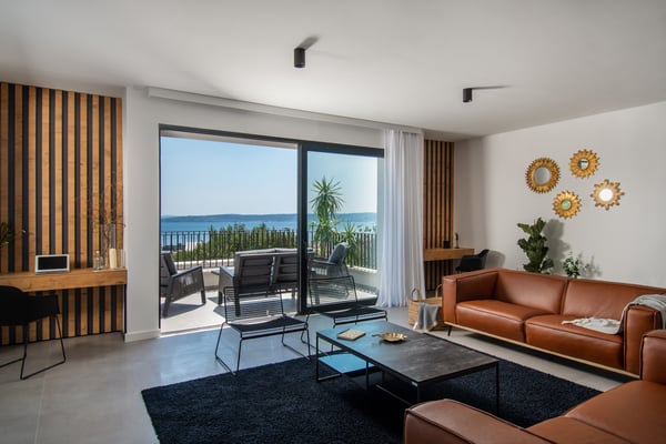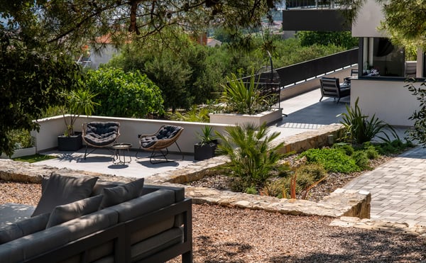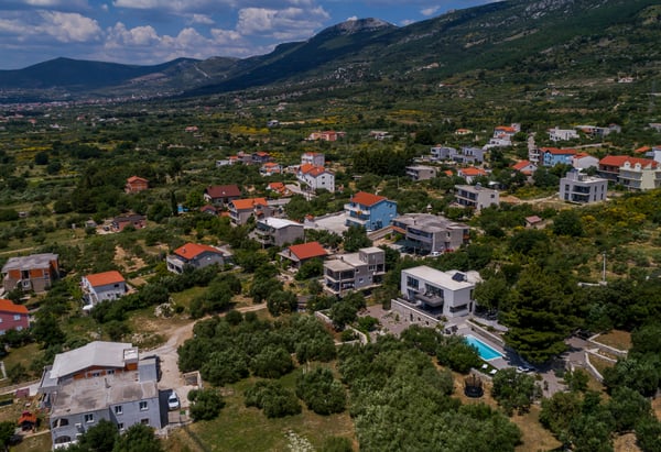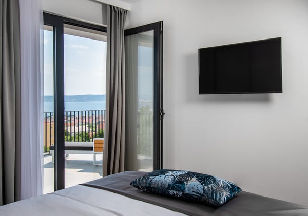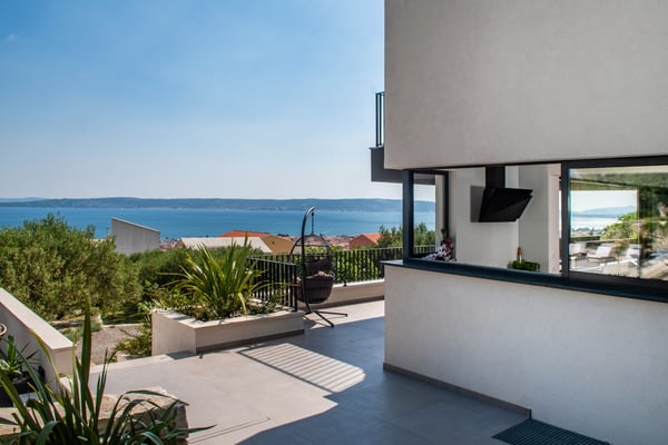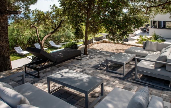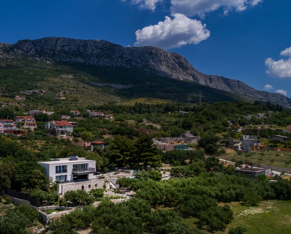 Luxury Villa Maderga, with a private heated pool, is the perfect fusion of proximity and isolation. Close enough to reach all the necessities, within a 15-minute drive (Split airport), 3 km from Pebble Beach and isolated enough to enter a zen state of mind. Situated on more than 5000 square meters of property, this three-floor villa has 450 square meters of indoor space overlooking the Kaštela Bay on the south and the guard of Kozjak Hill on the north. Town Kastela is specific because of the fact that it developed around seven settlements (Kaštel Štafilić, Kaštel Novi, Kaštel Stari, Kaštel Lukšić, Kaštel Kambelovac, Kaštel Gomilica and Kaštel Sućurac) or around castles. Each village has its own particularity merged into the character of this part of the Mediterranean. It is characterized by an excellent offer of nightlife (concerts of classical and brass music), various sports activities, cultural events, beautiful beaches, a turquoise blue sea, and a large selection of beach bars. The castles offer a good time, rest, and fun for all ages. Also, only a few minutes drive is needed to visit the tourist and culturally rich city of Split, which is a great advantage. Overlooking the lush greenery and the blue Adriatic, this wonderful villa is the perfect spot for a truly remarkable stay filled with serenity. Built with love for every detail, the villa can accommodate up to 12 people, comfortably pampered in six bedrooms. The fabulous living room is designed for complete relaxation, overlooking the wonderful Dalmatian nature and sea. The modern, fully-equipped kitchen with the designer dining room is the guilt-free zone for delicious adventures. Blended with a pine forest and an olive garden, this modern house interacts with its nature. Designed in a modern, contemporary style, the villa offers an open-plan living accommodation with patio doors that lead out to the inviting, large sun terrace area equipped with loungers. Here you can spend time relaxing whilst admiring the wonderful views throughout your stay. For those who are keen to keep up their fitness and would like to start the day with yoga and exercise in a fantastic environment, with nature and sea view, here are wonderful surroundings. Finnish sauna, heated outdoor pool, sun deck, outdoor kitchen with a fireplace, playground, grandiose botanical garden, and other important necessities you need to enjoy your vacation. You will fall in love with the location of this villa and one of the most beautiful beaches in Kastela Riviera, which can be reached in just a few minutes’ drive, there are many others along this fabulous coastline not to be missed.