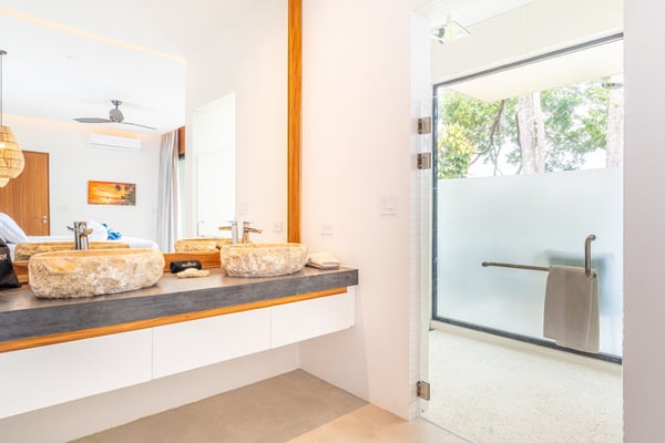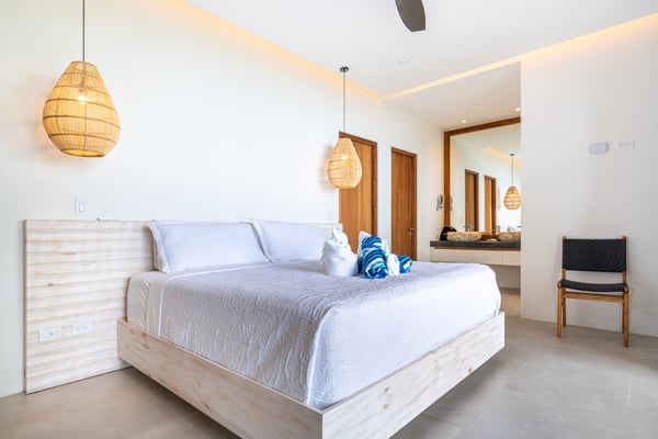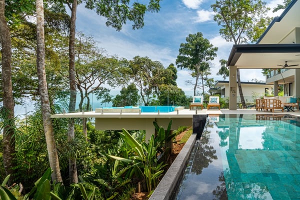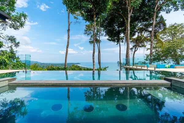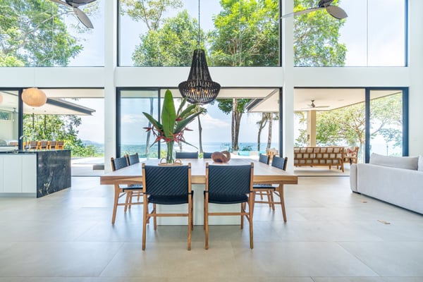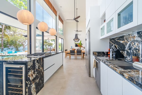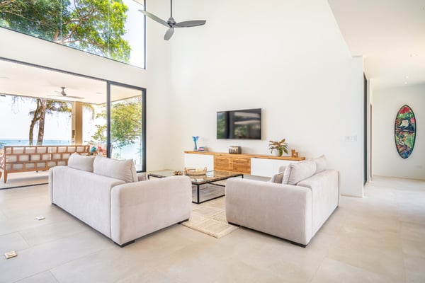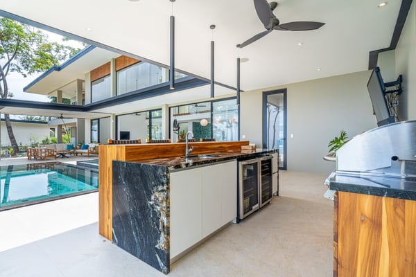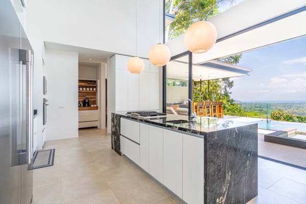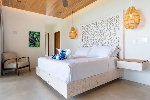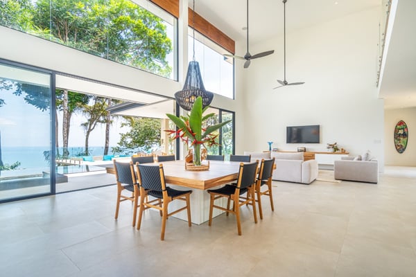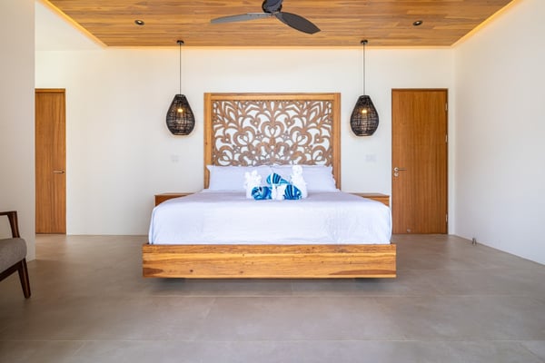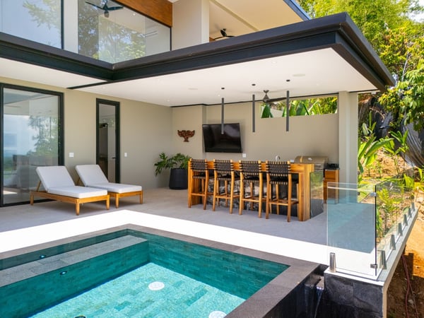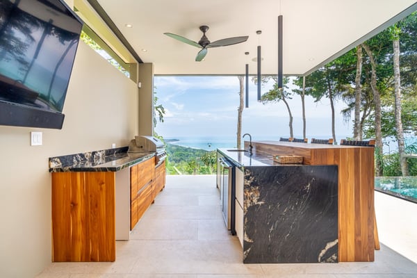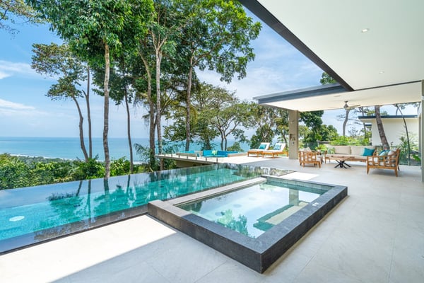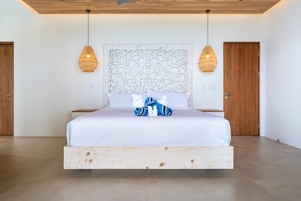 Welcome to Casa La Vista, a truly premier top-notch villa nestled in an exclusive luxury community, boasting unparalleled ocean views and seamless integration with nature’s picturesque landscape. This extraordinary villa is a sanctuary designed for those who appreciate elegance combined with unique, upscale amenities. Set atop the highest point in the neighborhood, Casa La Vista offers an unmatched experience in a serene and secure setting. Entering Casa La Vista, you’ll find yourself surrounded by a harmonious blend of local and international artwork, setting the tone for a culturally rich and visually inspiring stay. Each of the four well-appointed bedrooms is adorned with floating king-size beds, each boasting its own distinct design elements, ensuring privacy and comfort. Additionally, the Oceanview office transforms seamlessly into a guest room with a full-size Murphy bed, perfect for relaxation or catching up on work while gazing out at the expansive sea. One of the villa’s standout features is its connection with the outdoors; an awe-inspiring firepit surrounded by a cozy seating area invites you to enjoy memorable evenings under the stars. Adjacent to the sparkling infinity pool, you'll find a luxurious jacuzzi, creating a flawless transition from exhilarating swims to soothing relaxation. Enhance your outdoor experience with selections from the outdoor wine fridge, ensuring your refreshments are always at the perfect temperature. Getting to Casa La Vista is a breeze, unlike many other Oceanview properties in the area, as there is no requirement for a 4x4 vehicle. The property can be easily accessed by any type of vehicle.