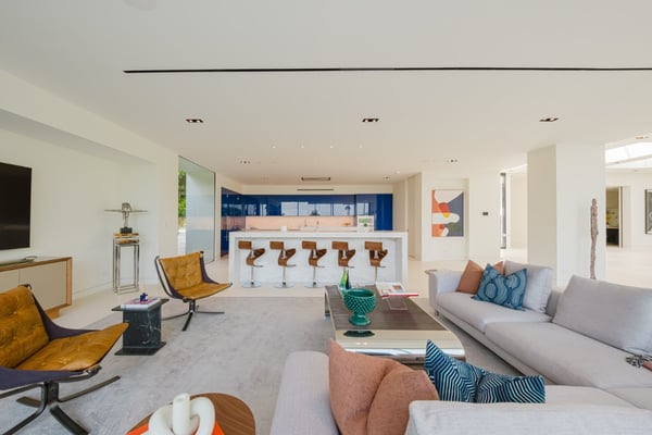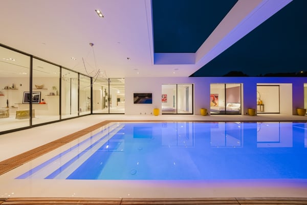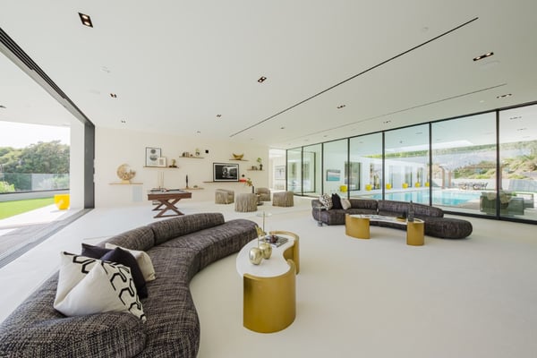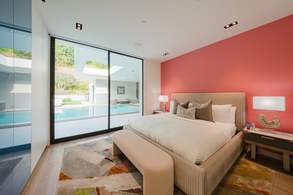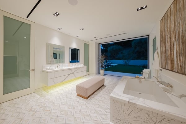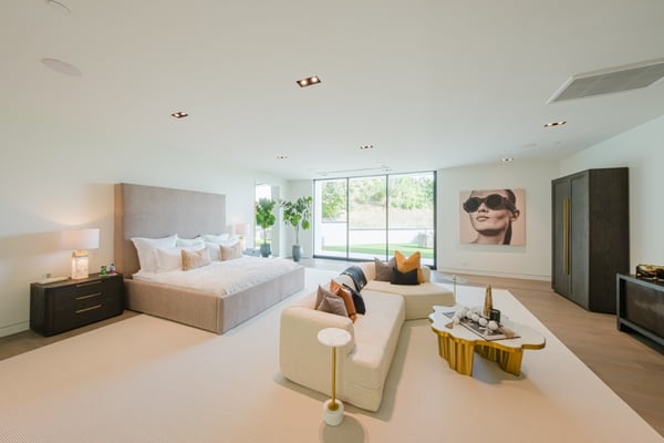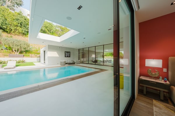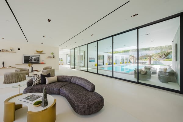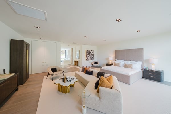 This property offers epic scale with exceptionally high ceilings, open spaces, and walls of glass that disappear and blur the lines between the indoor and outdoor spaces. Designed for large-scale entertaining, the vast living room flows to the outdoor living room and zero-edge infinity pool. The master suite features beautiful city views, large open space and a beautifully decorated oasis. Five additional bedroom suites each with walls of glass opening to the grounds and pool beyond.