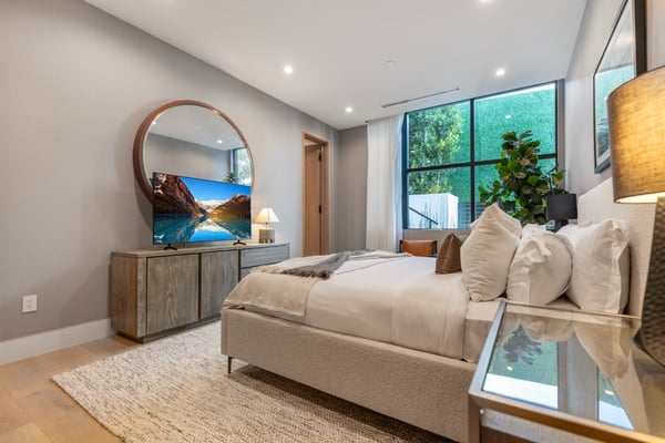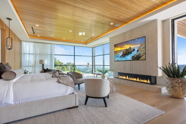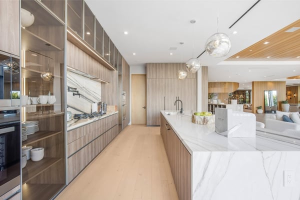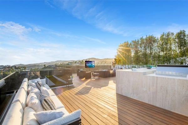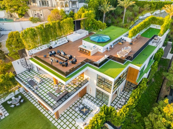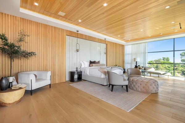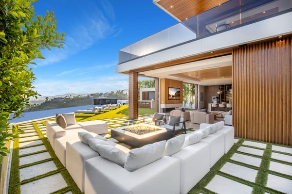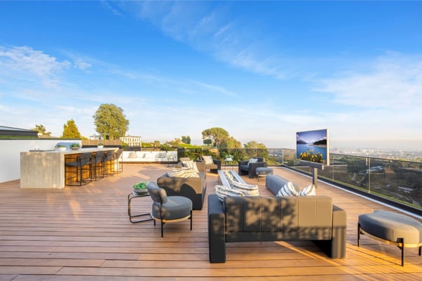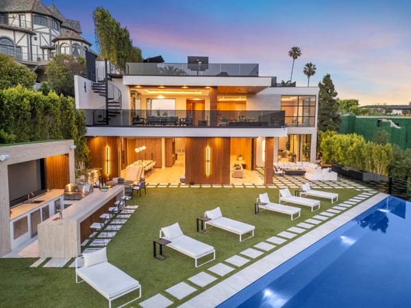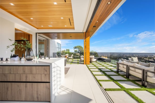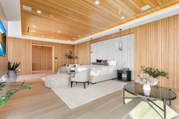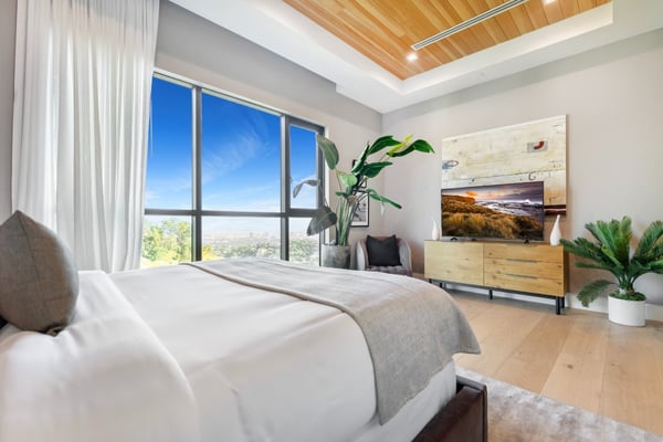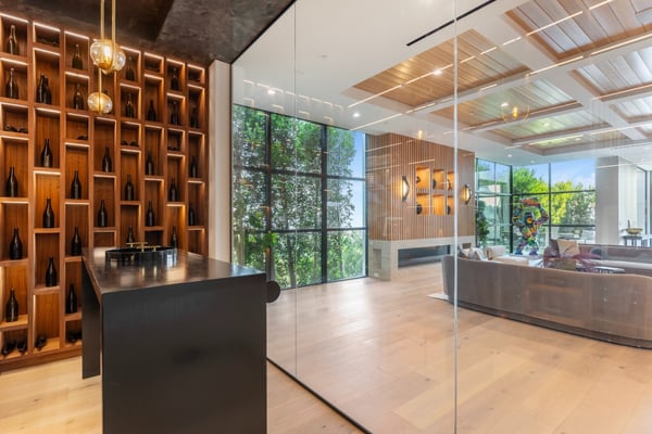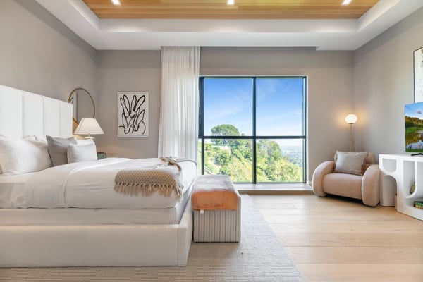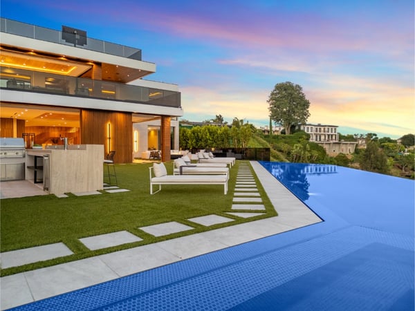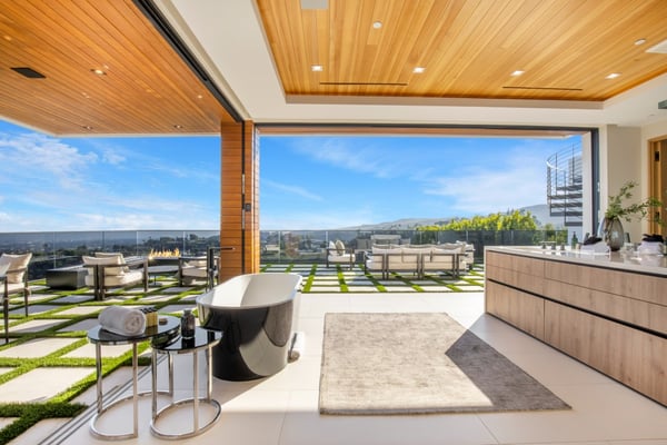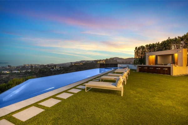 This property is only available for monthly stays with a minimum of 31 nights. If you are interested in short-term stays, please contact one of our villa specialists for your luxury travel needs. Descend the private, gated driveway to this incredible oasis set in one of the most prestigious neighbourhoods. The lush grounds and gated drive provide the utmost privacy and security. The oversized front door is flanked by walls of glass, wood, and a colourful living wall to create an unforgettable welcome. Step inside to experience the warm contemporary design, high-end finishes, show-stopping living wall, high ceilings, and panoramic ocean/city views. Automated Fleetwood glass doors open throughout the home to create a seamless indoor/outdoor lifestyle. The custom culinary center is a gourmand's dream, with state-of-the-art appliances, an adjacent chef's prep area with a restaurant-grade walk-in refrigerator, and an oversized island. A travertine-clad bar and stunning wine room with tasting area help to make this one of the most incredible homes for entertaining. The primary suite is complete with a fireplace, wraparound deck with fire pit and sweeping views, spa-inspired bath with oversized rainwater shower, a Zen soaking tub, dual-sink vanity, and custom walk-in closet and dressing room. The latest and greatest amenities include a theatre, gym, resort-style tropical landscaping, parking for 7 cars, a smart-home system, and automated security. The outdoor oasis offers the perfect space for dining al fresco, an outdoor kitchen with bar and flat-screen TV, flat grassy areas, spa, and a massive 80-foot zero-edge infinity-edge pool looking out to incredible city and ocean vistas. There is a large flat area that is perfect for adding a sports court, pickleball court, or tennis court. The outdoor space continues to the rooftop lounge with bar, large TV, fire pit, built-in BBQ, and putting green. Do not miss this opportunity to live at Bel-Air Paradise with jetliner views and incredible amenities in one of the most sought-after locations. Please note: There is no garage access.