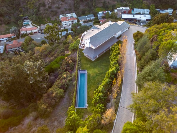 This property is only available for monthly stays with a minimum of 31 nights. Nestled within the prestigious enclave known as ""Billionaire's Row,"" this opulent double-gated estate spans over 1.14 acres, boasting unparalleled privacy and security. With sweeping views of city lights and the ocean, the location sets the stage for a lifestyle of grandeur. Encompassing approximately 5,580 square feet of pure luxury, the estate offers a harmonious blend of sophistication and comfort. Its interior features include five lavish bedrooms and six exquisite bathrooms, each thoughtfully designed for both relaxation and indulgence. Step inside to discover a gourmet kitchen adorned with top-tier Wolf and Sub-zero appliances, centred around an expansive island. The formal dining room exudes elegance, while the spacious living room, complete with a fireplace, beckons for moments of warmth and togetherness. French doors grace the living spaces, connecting them seamlessly to the outdoors. Venture to the sun-kissed front patio, where ocean and city views unfold before your eyes. The infinity pool commands attention, overlooking the breathtaking scenery. A sprawling grassy yard, a spa, and even a fenced vegetable garden offer an oasis of outdoor pleasures. Ascend the sweeping staircase to the master suite, a sanctuary of indulgence with soaring ceilings, a spa-like bath, and dual closets. Step onto your private balcony to relish the captivating views. Three additional en suite bedrooms grace the upper level, alongside a guest room downstairs. Entertainment finds its zenith in the state-of-the-art professional screening room, while a well-equipped gym caters to wellness enthusiasts. Gleaming hardwood floors traverse the estate, adding to the allure of its refined interiors. With guest quarters and an oversized mudroom and laundry area, practicality seamlessly merges with luxury. This estate is the epitome of an entertainer's haven, inviting you to experience the quintessential LA lifestyle where sophistication meets relaxation. Intricate details, panoramic views, and lavish amenities converge to present an estate that transcends ordinary living, redefining opulence for those who seek the extraordinary. Important Note: Please be aware that cellular reception in the area may vary depending on your provider. To ensure a seamless experience, we recommend downloading Google Maps offline before your arrival. By saving the area in advance, you can easily navigate and access directions even without cellular service or Wi-Fi. This will help you get around with ease during your stay.