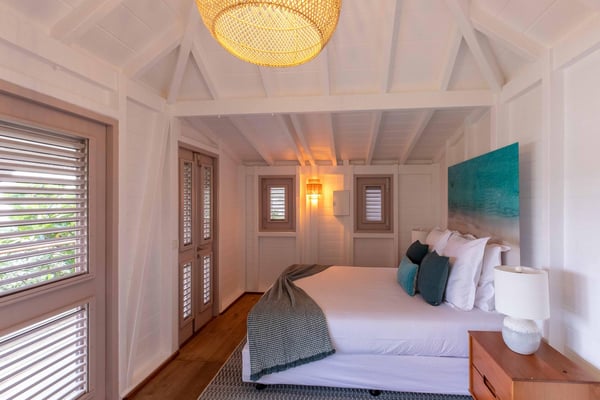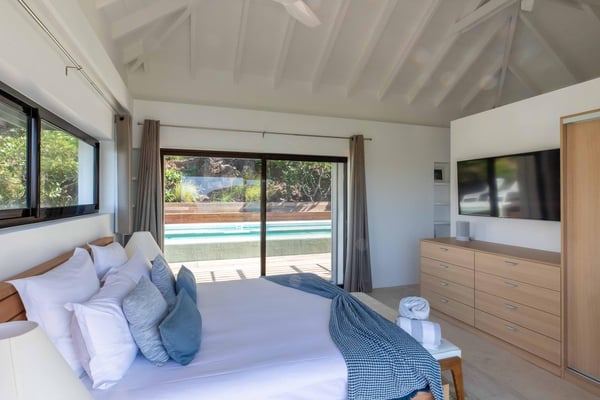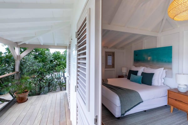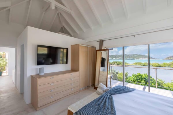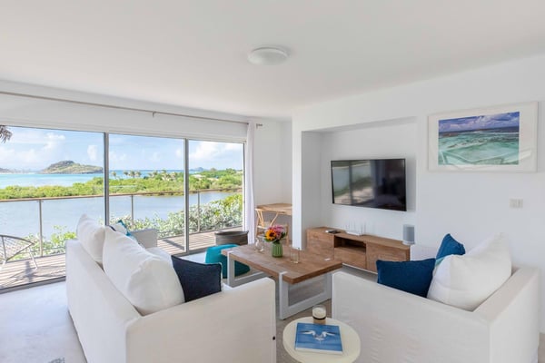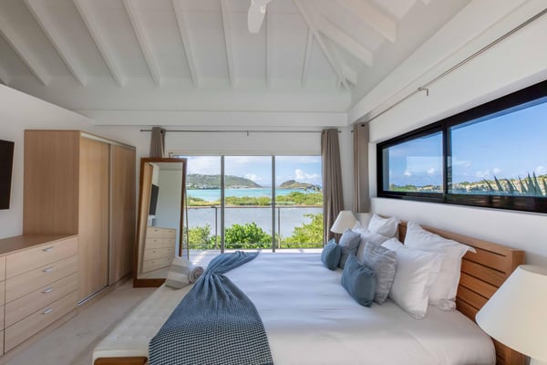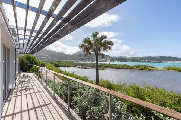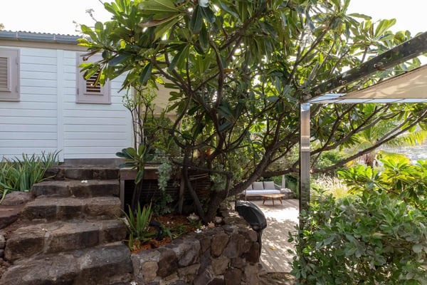 Borderline is situated close to Grand Cul-de-Sac beach. The villa offers magnificent views over the lagoon. Located at the rear of the villa, the pool, petanque court, and large deck are the perfect places to relax and enjoy the sun in a private space surrounded by rocks and vegetation. An elevated viewpoint offers a sublime panorama of the landscape. The main room, decorated in white and natural wood, is bright and offers a panoramic view of the lagoon from the kitchen, dining room, and living room, creating a soothing and relaxing atmosphere. The villa has two bedrooms, each with its own bathroom. The first, adjoining the living room and enjoying the same open view of the lagoon, is a real haven of peace. The second bedroom, situated in an independent bungalow accessible via the terrace, offers more intimacy and has a spectacular view over the bay. This property is a perfect blend of modern comfort and the traditional charm of Creole architecture. The villa Borderline is ideal for those seeking a peaceful stay in Saint-Barthélemy.