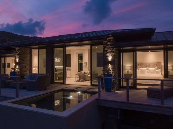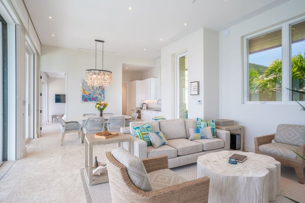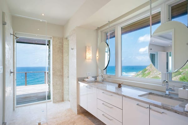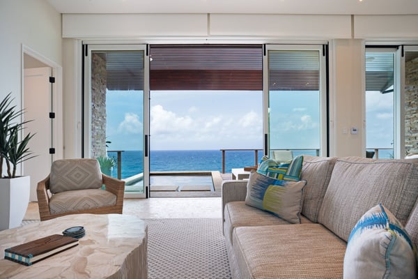With uninterrupted views of the sparkling sea, Whale Point is situated on Oil Nut Bay’s dramatic Atlantic Ridge. This ocean view rental on Virgin Gorda’s south shore is an intimate escape, offering simple yet sumptuous ocean side living at its finest. Two luxurious master suites, each with their own ensuite bathrooms, flank an open concept great room, fully-loaded kitchen and indoor dining area. Sun lovers will revel in the expansive deck with ample room for lounging and dining, as well as the gorgeous plunge pool suspended above the Caribbean Sea. Enjoy watching whales off your deck or walk to the Beach Club.