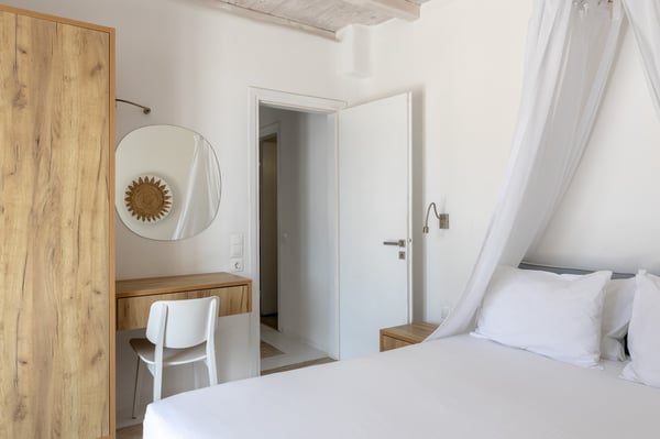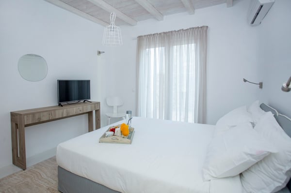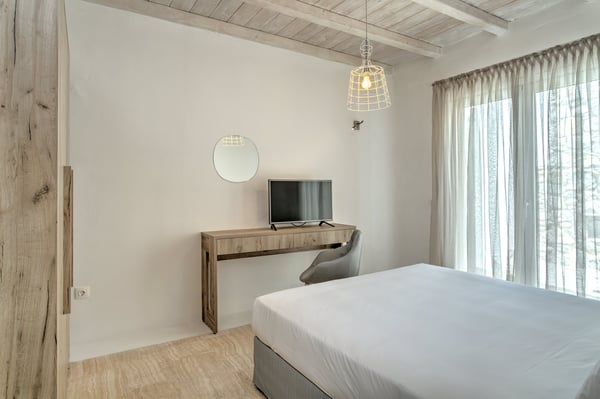 Welcome to our four bedroom Villa Villa Esthesis 1, located in a superb hotel area, where tranquility meets elegance. This exquisite villa offers a peaceful retreat with unparalleled comfort. Also, every day you can enjoy the hotel's breakfast either in your private Villa or the central pool area. As you step into the villa, you are greeted by a spacious and elegantly designed living area, adorned with tasteful furnishings and soothing color schemes that evoke a sense of relaxation. The open-plan layout seamlessly connects the living area to the fully equipped modern kitchen, perfect for preparing delicious meals to enjoy with loved ones. Outside, the villa boasts expansive terraces and a private swimming pool, where you can unwind and soak up the Mediterranean sun in absolute tranquility. Whether you're lounging by the poolside or dining al fresco under the starlit sky, every moment spent in this idyllic setting is bound to be memorable. Guests of the villa also have access to the pool bar and all the common areas of the hotel.