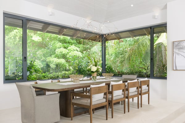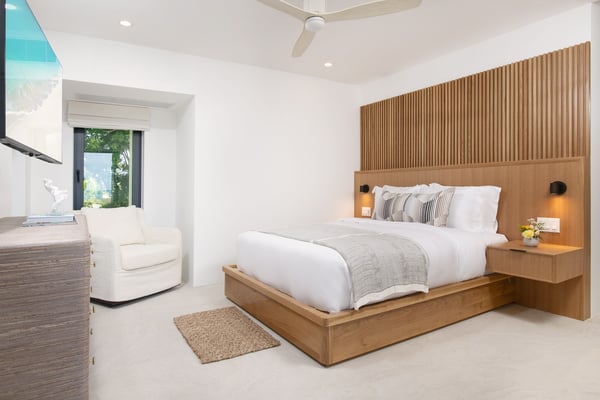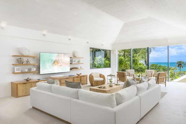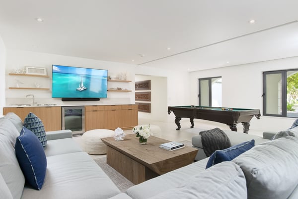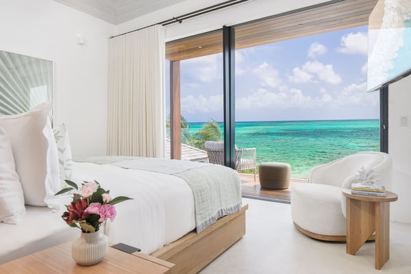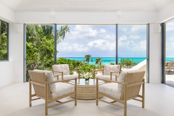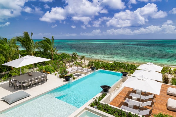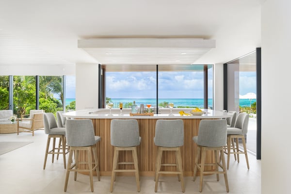 The home takes your breath away from the moment you arrive at the front gate. The long, gravelled driveway is lined with large, age-old Caribbean mahogany trees that canopy over your vehicle as you approach the villa’s entry pavilion. Throughout the home, careful detail and consideration have been put into each space, taking into account luxury, comfort and the enhancement of the natural surroundings. The Seafire is styled as a modern, but transitional home that extenuates its already privileged surroundings with distinct textures and flair. The property contrasts beautifully with the turquoise ocean and white sandy beaches that make Turks and Caicos so special. The home has a dedicated full staff complete with a chef, butler and housekeeper to cater to your every whim throughout the day and night. Staff operate out of a separate chef’s kitchen and staff space, allowing you and your guests privacy throughout your stay while the staff work behind the scenes. There is also an extensive 40 kW solar system installed at the villa that offsets the majority of the home’s carbon footprint.